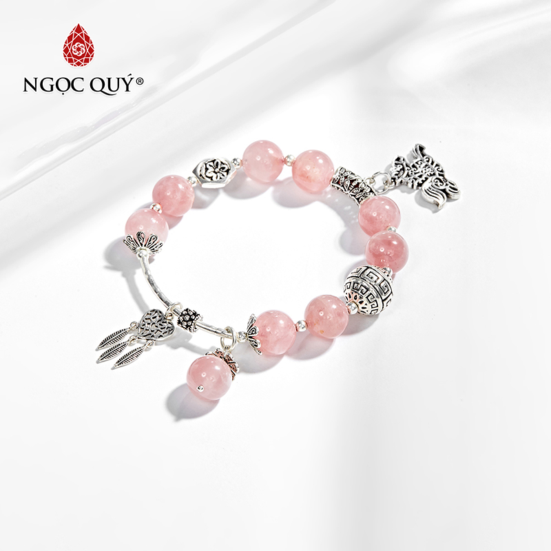 VÒNG TAY ĐÁ THẠCH ANH HỒNG PHỐI CHARM DREAMCATCHER BẠC