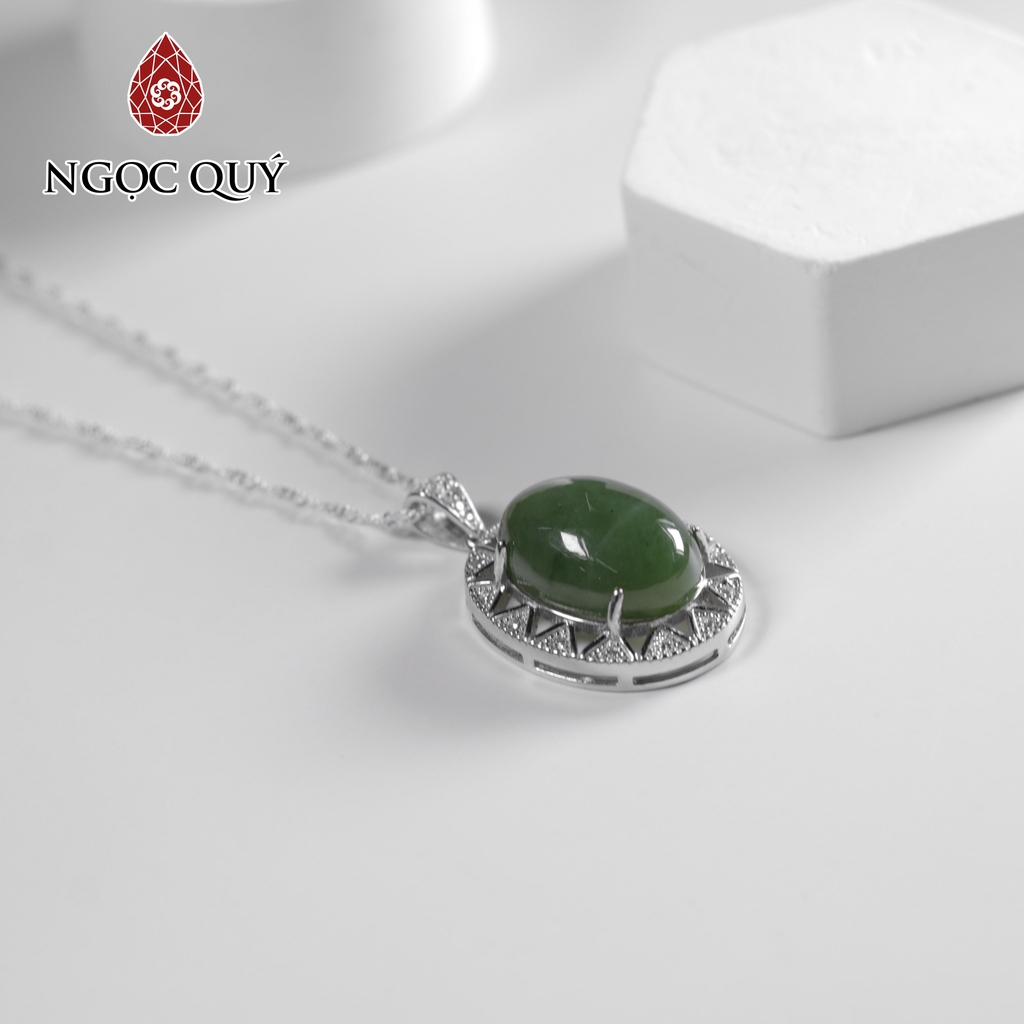 Dây chuyền bạc mặt đá ngọc bích thiên nhiên