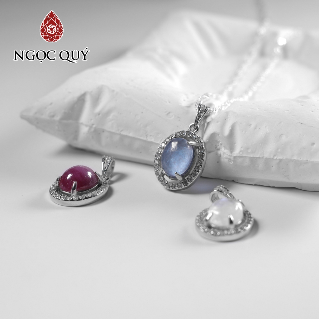 Dây chuyền bạc mặt oval đính đá thiên nhiên 14x12mm