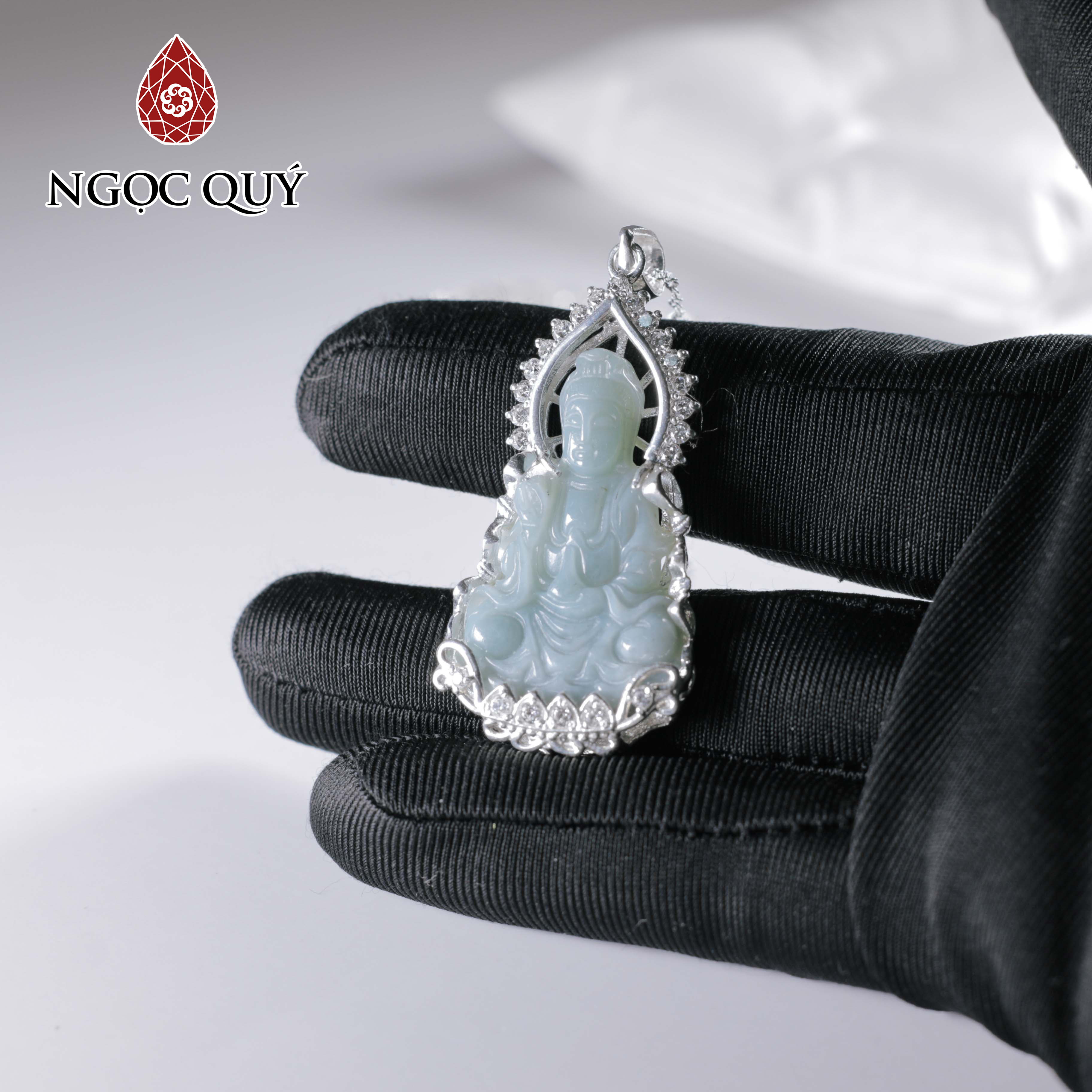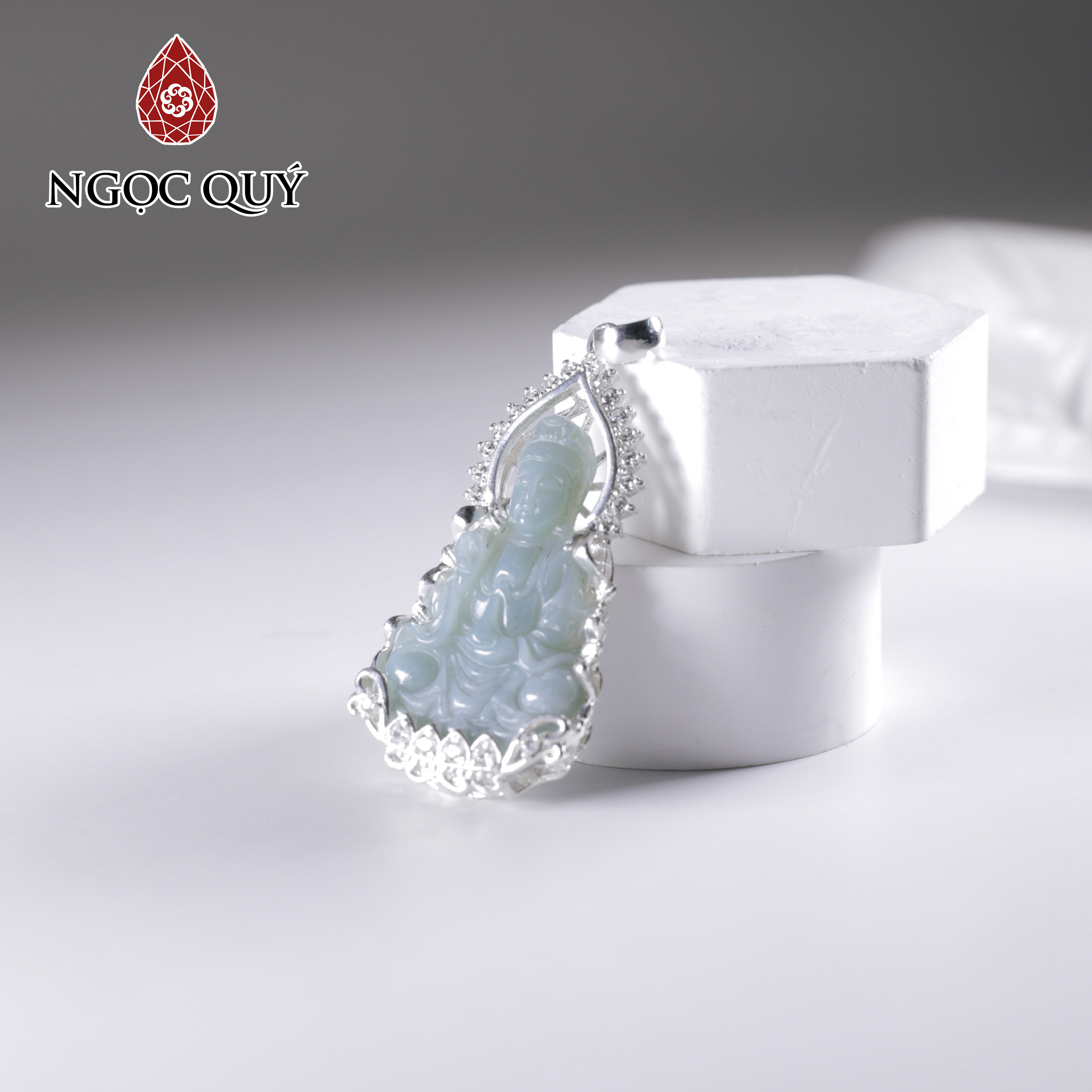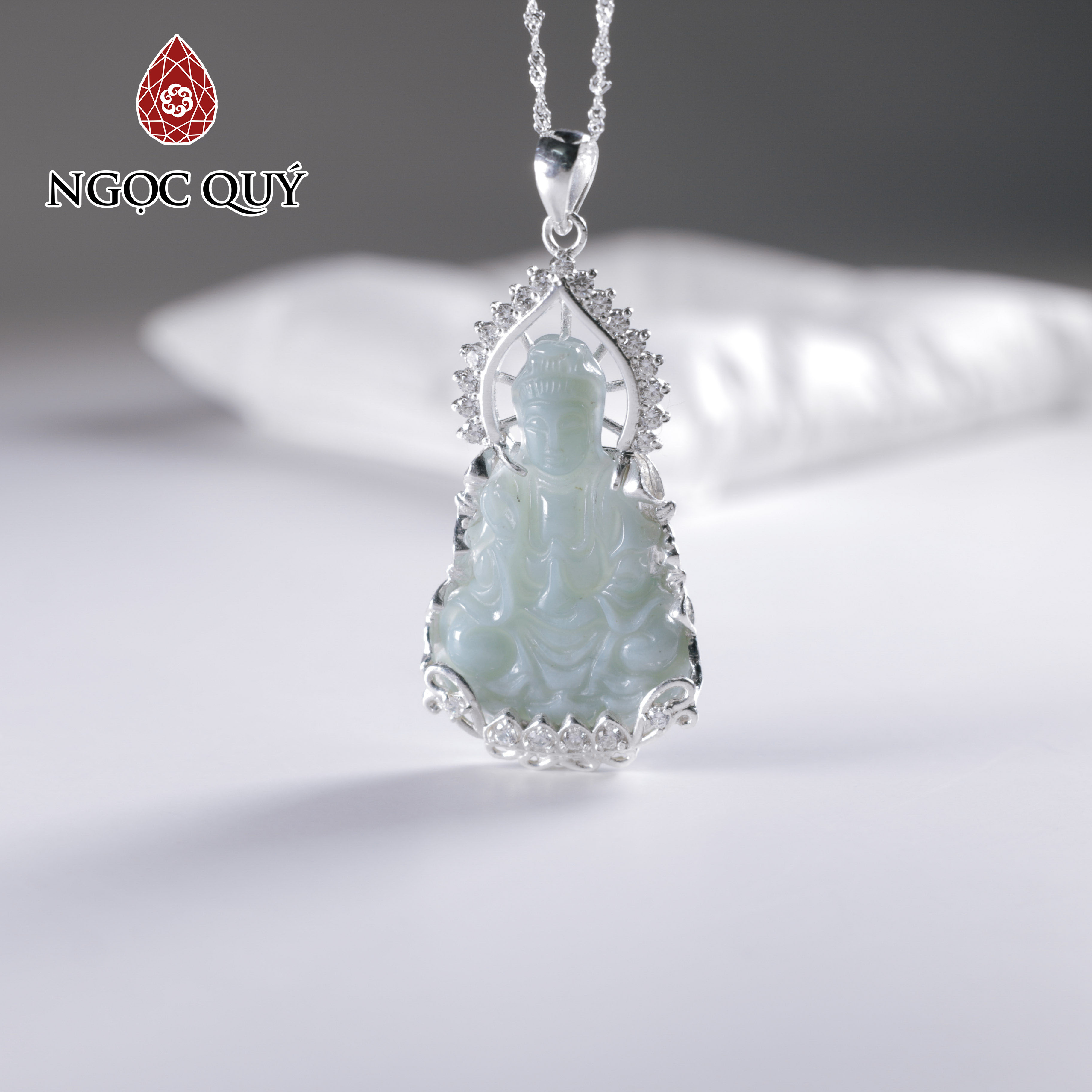 Dây chuyền bạc phật bà cẩm thạch lam ngọc bọc bạc