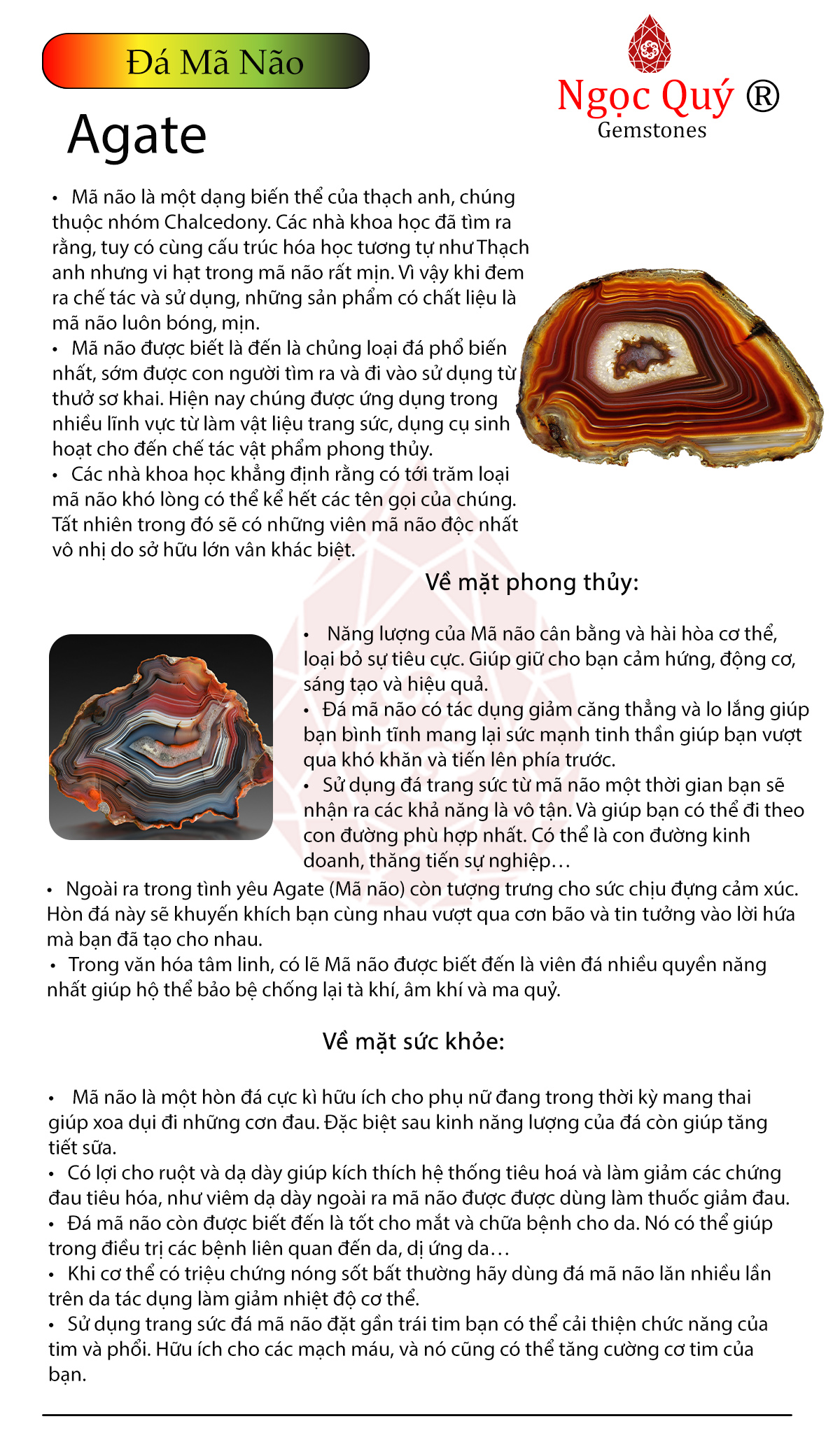 Cách đây 10 năm, Mã Não từng làm mưa làm gió trên thị trường phong thủy, được xem là một trong 7 loại trân bảo của Nhà Phật.Với những công dụng tuyệt vời của mình về sức khỏe và phong thủy, Mã Não tự tin đánh gục trái tim của những người yêu cái đẹp và tin tưởng vào tâm linh.