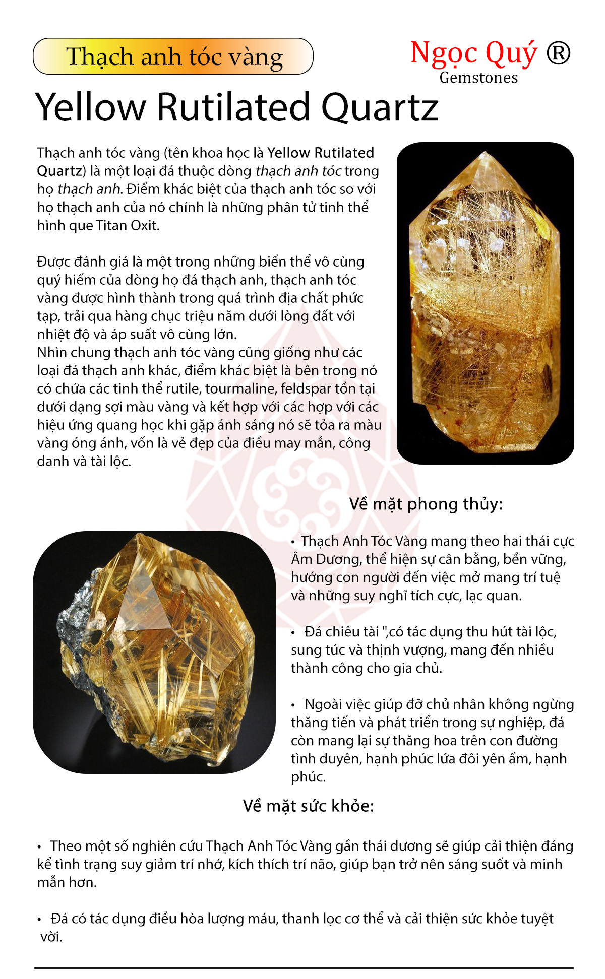 Chất liệu: Đá Thạch Anh Tóc Vàng thiên nhiên 100%, Bạc 925 ( 92.5% bạc, 7.5% hợp kim khác).