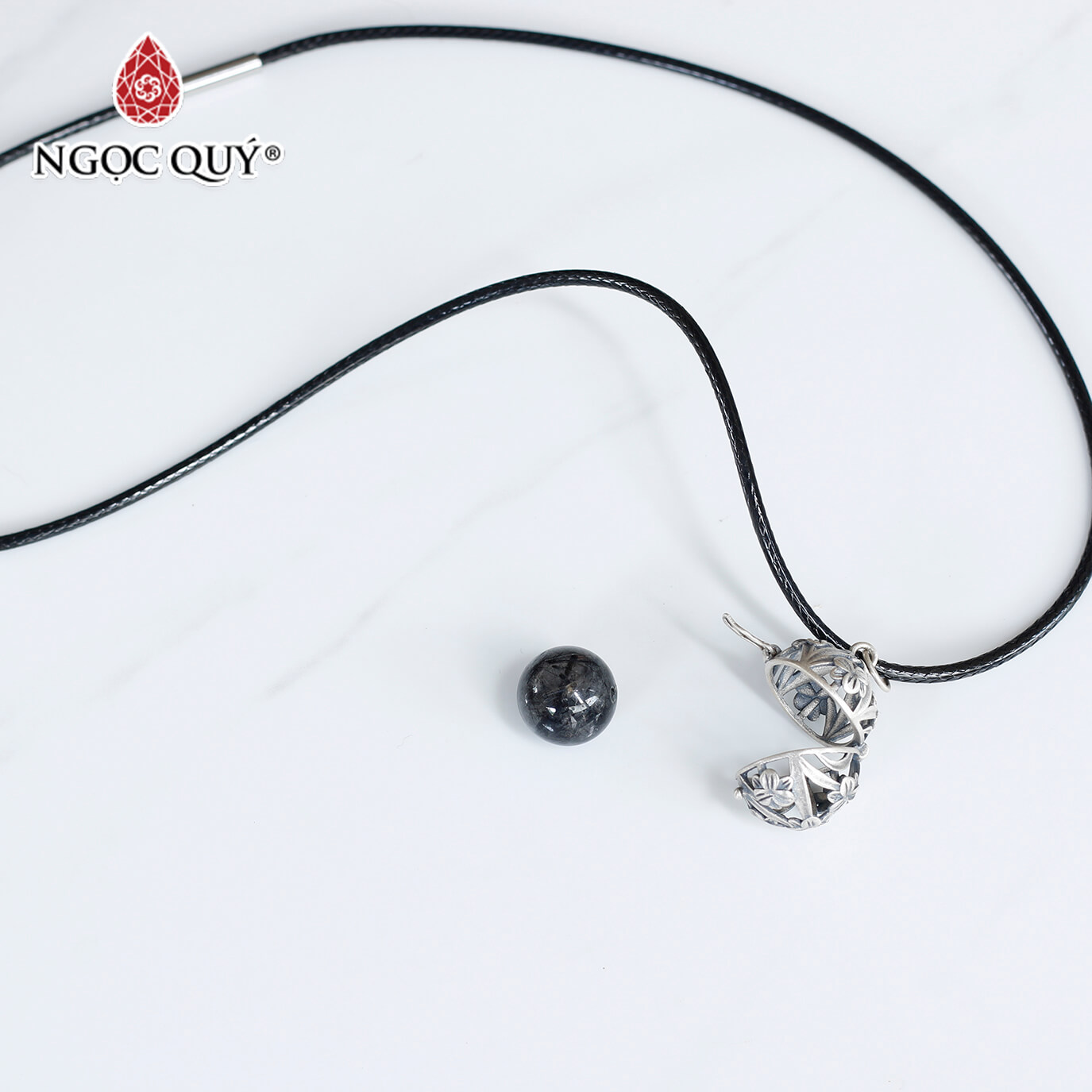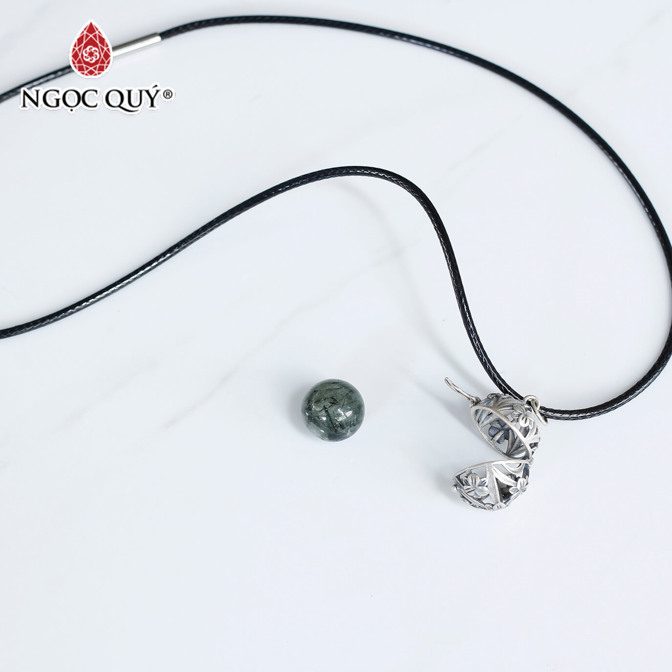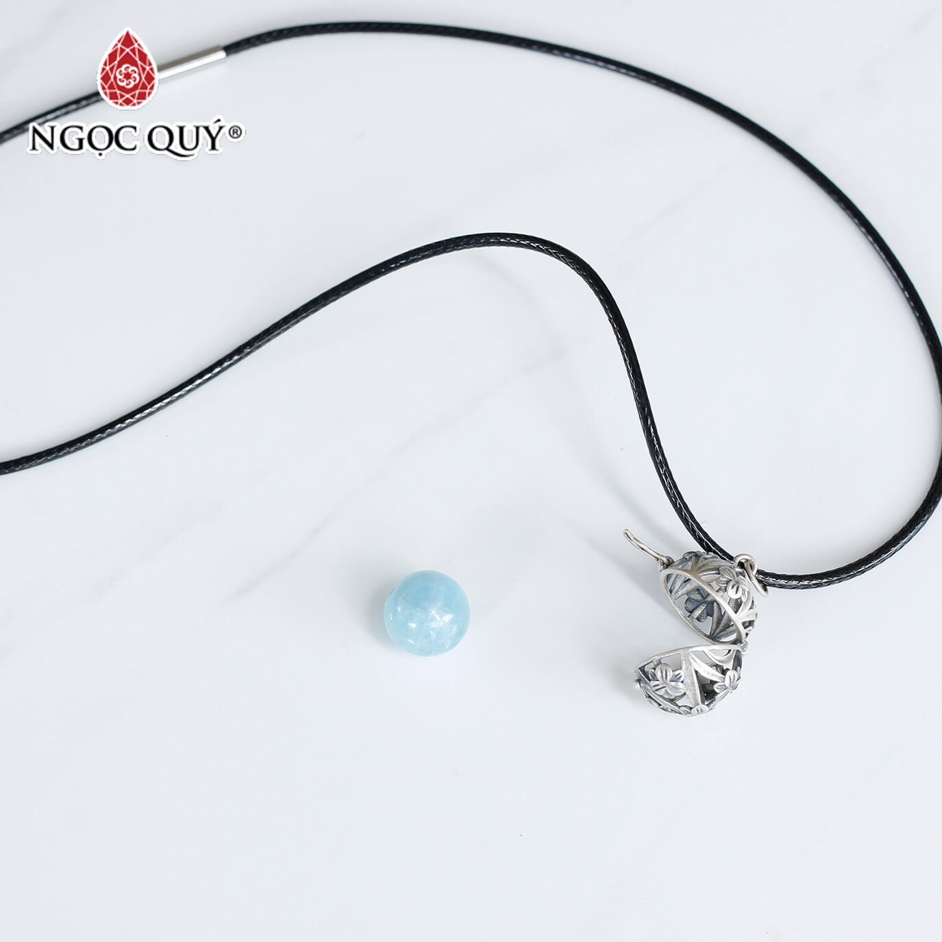 Mặt dây chuyền bạc lồng hạt đá 12mm