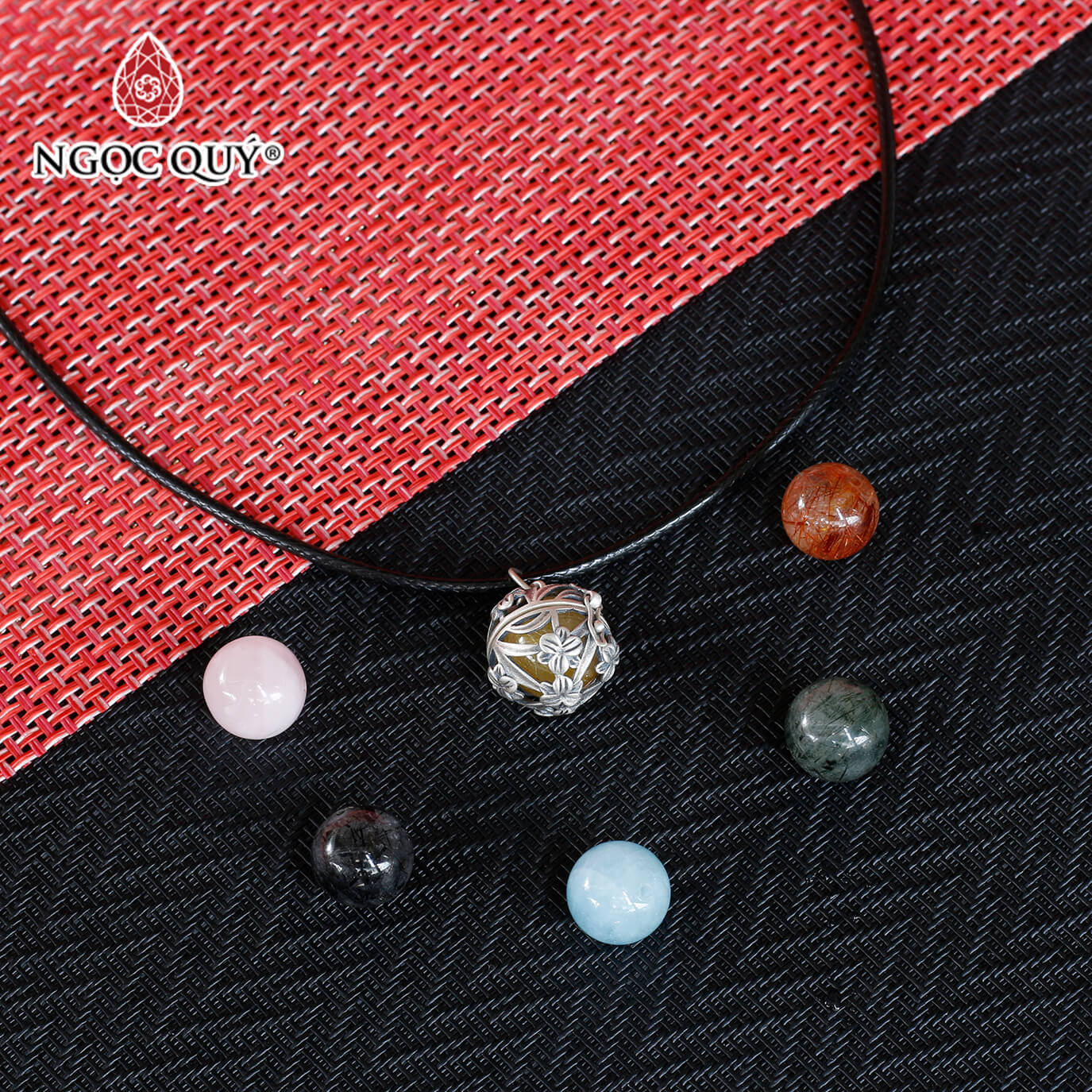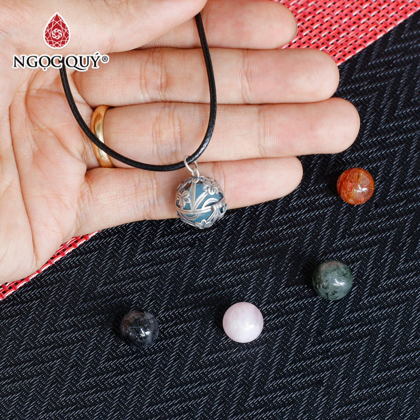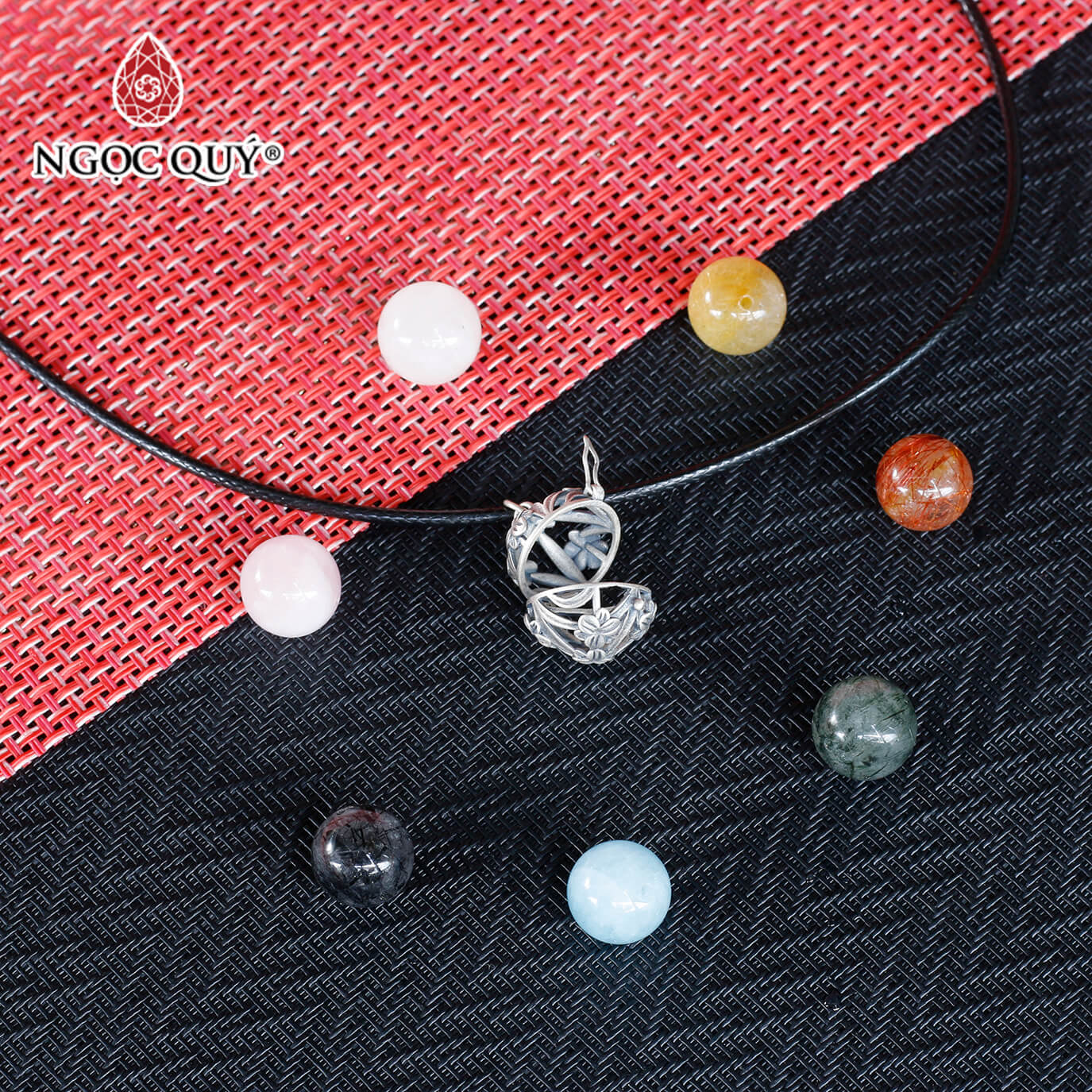 Mặt dây chuyền bạc lồng hạt đá 12mm