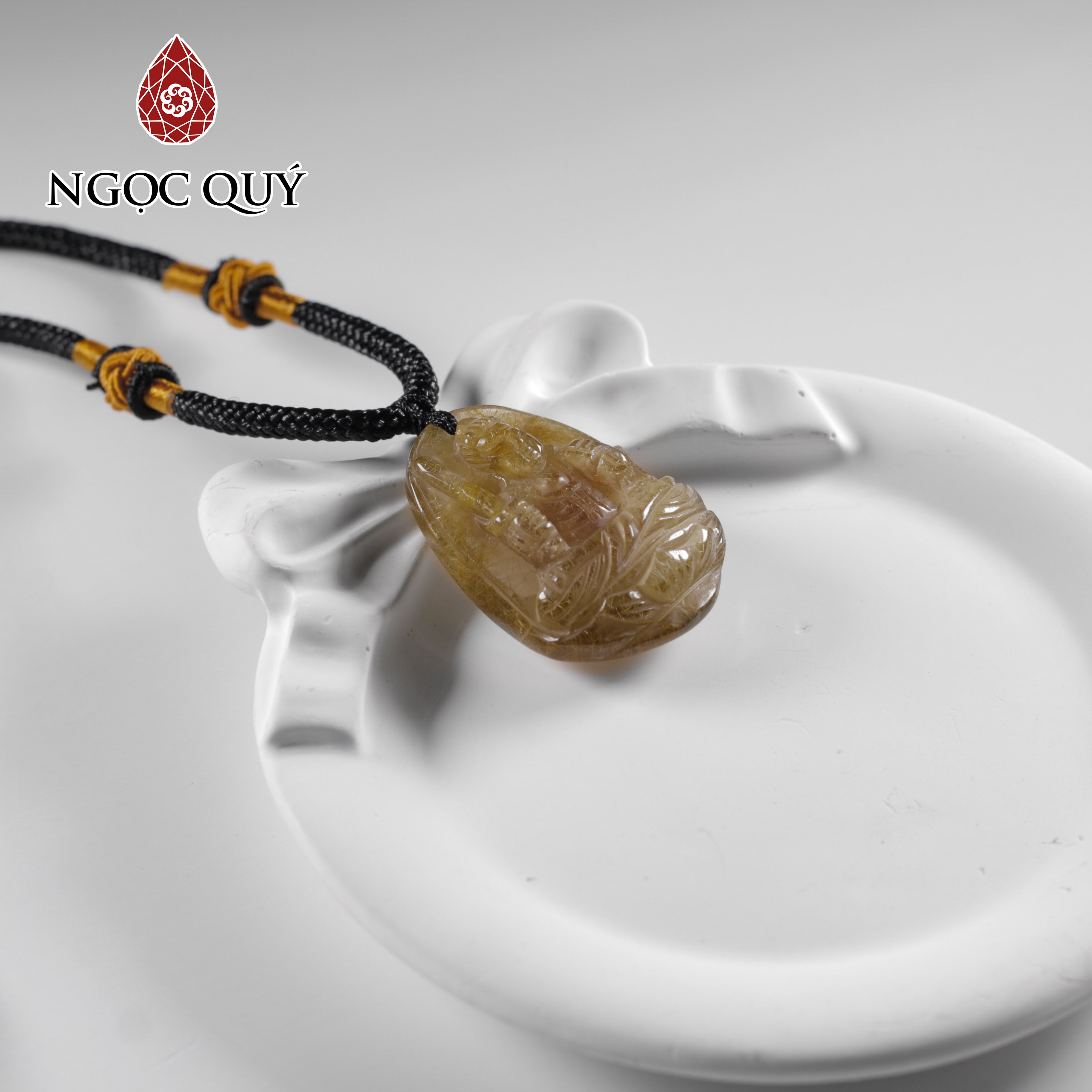 Mặt dây chuyền Bất Động Minh Vương đá thạch anh tóc vàng 25x35mm