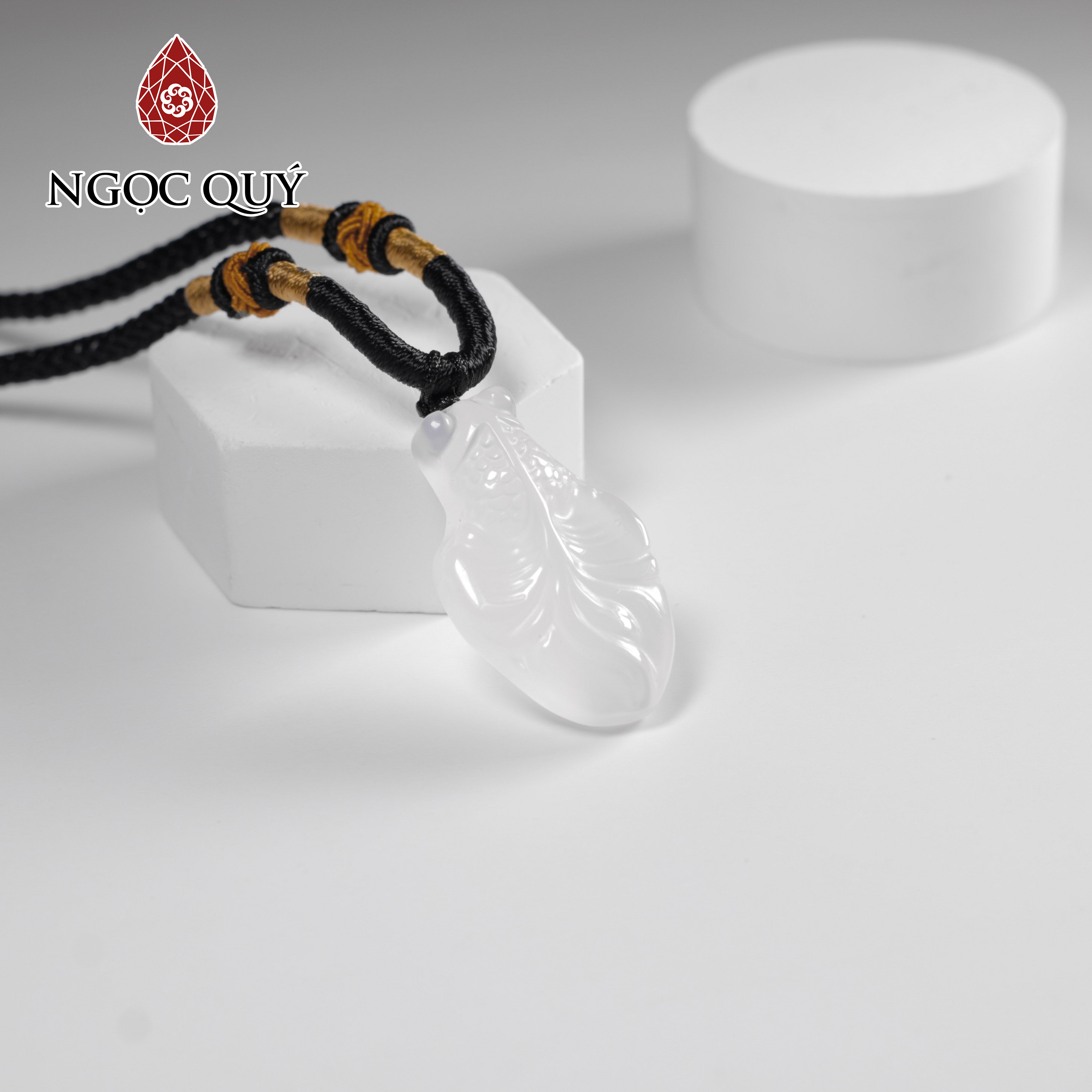 Mặt dây chuyền cá chép đá mã não trắng