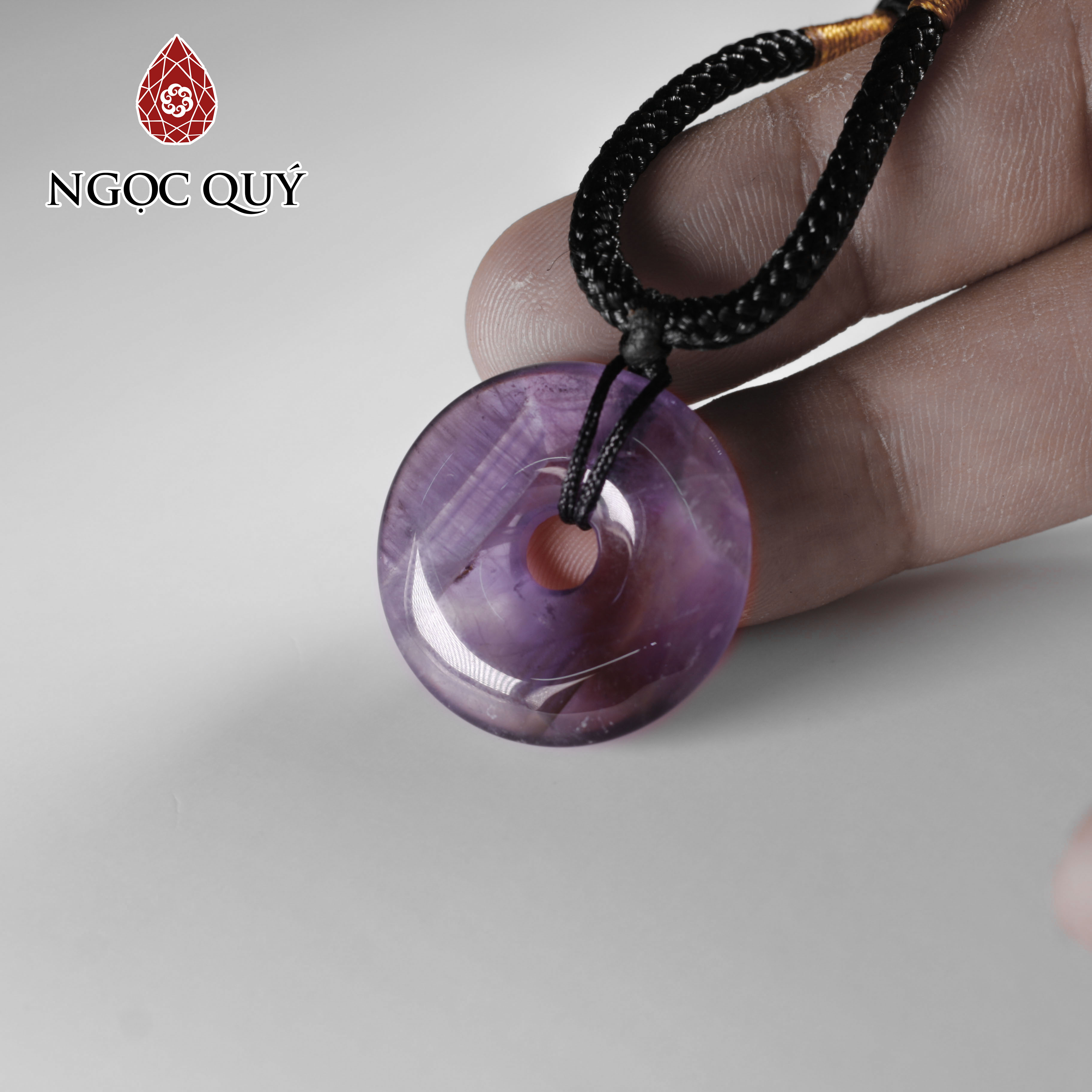 Mặt dây chuyền đồng điếu đá thạch anh tím đẹp 25mm