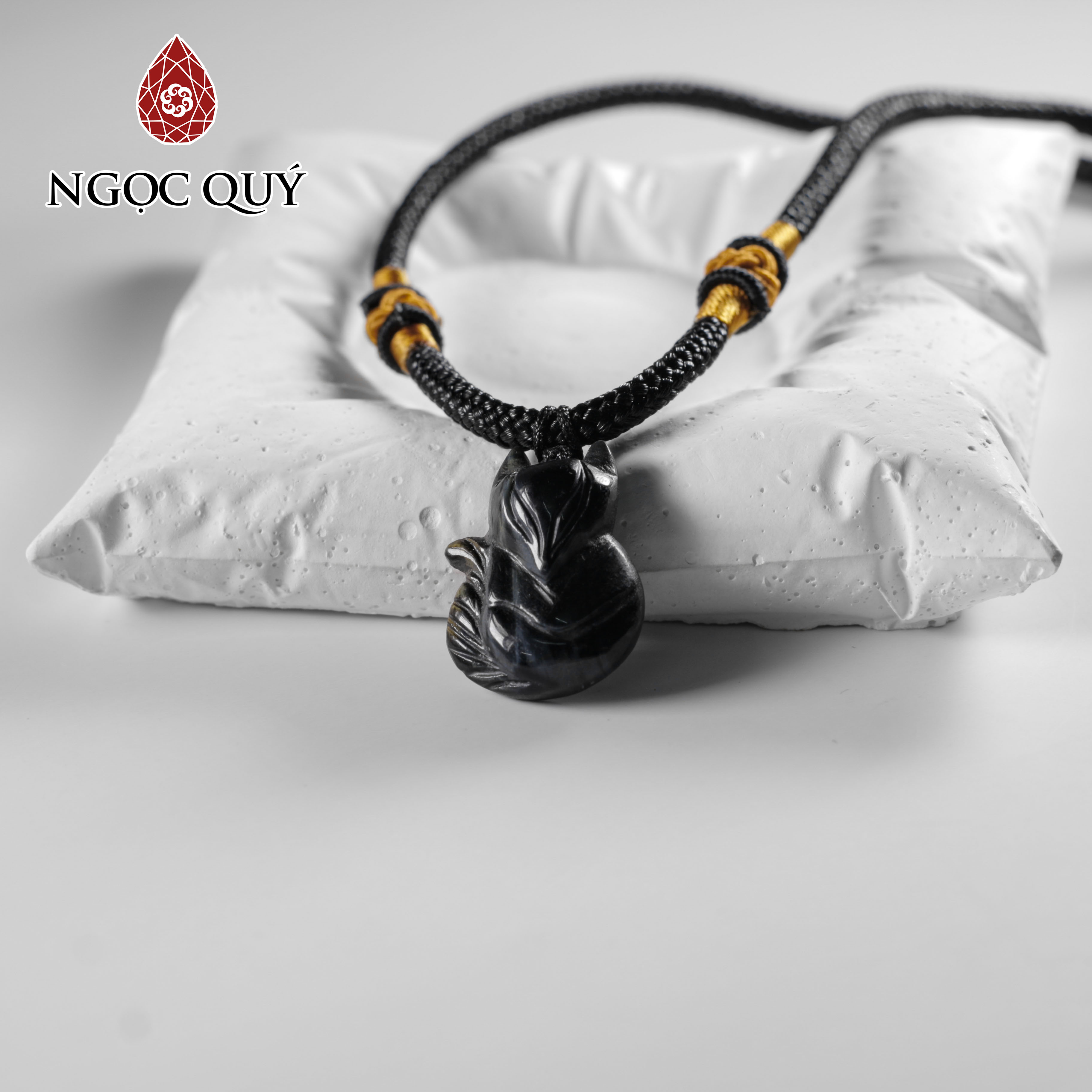 Mặt dây chuyền hồ ly đá mắt hổ xanh đen