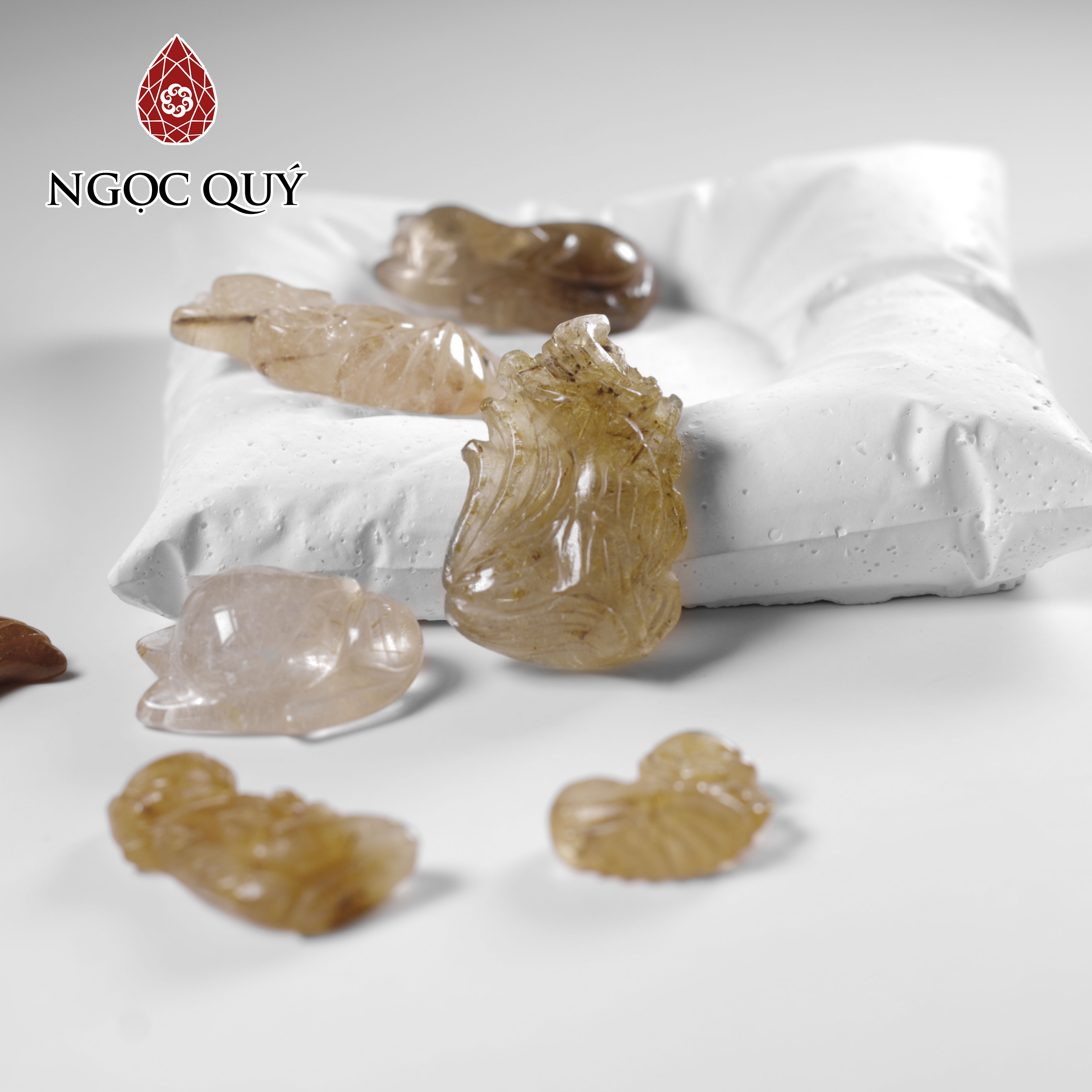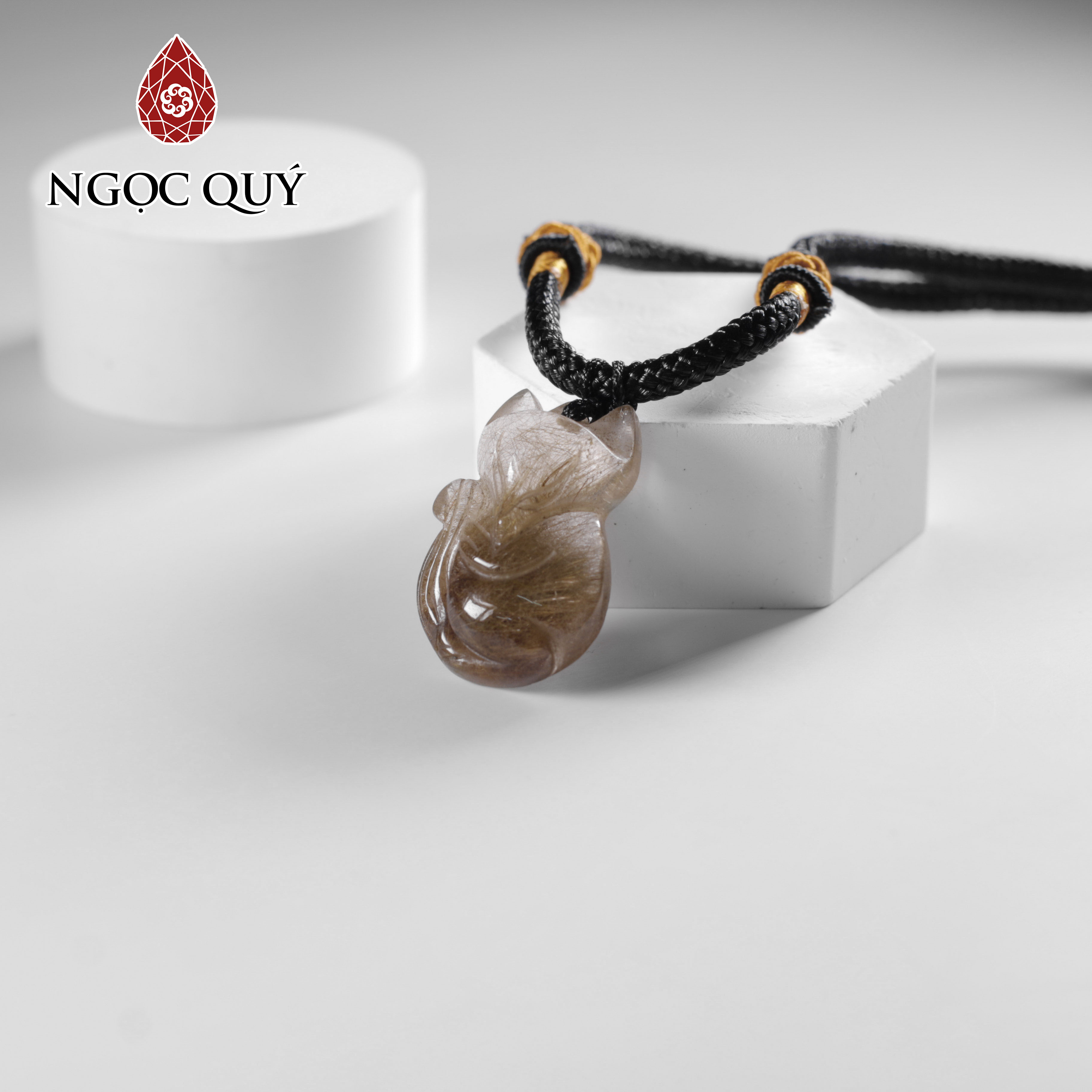 Mặt dây chuyền hồ ly đá thạch anh tóc vàng