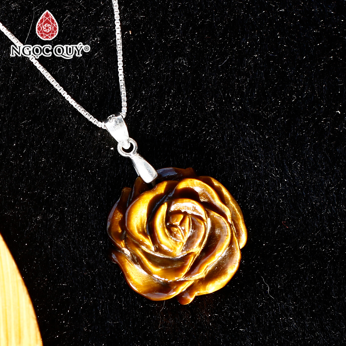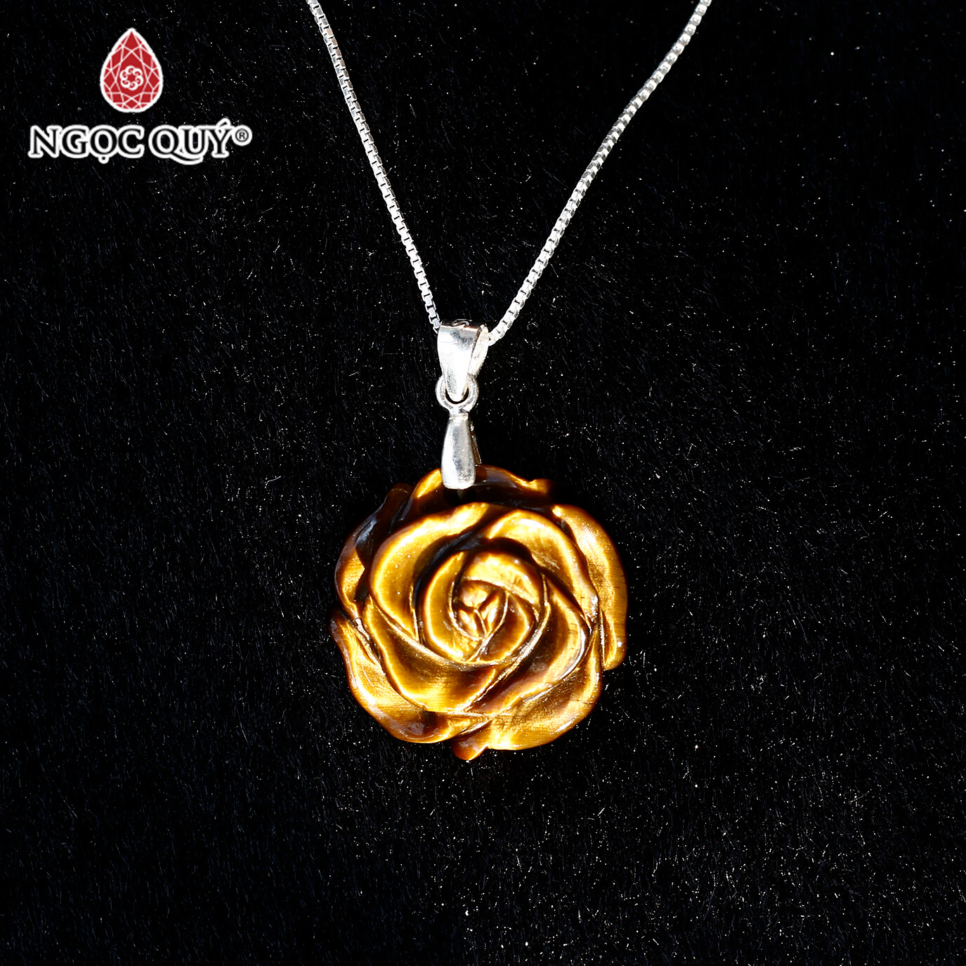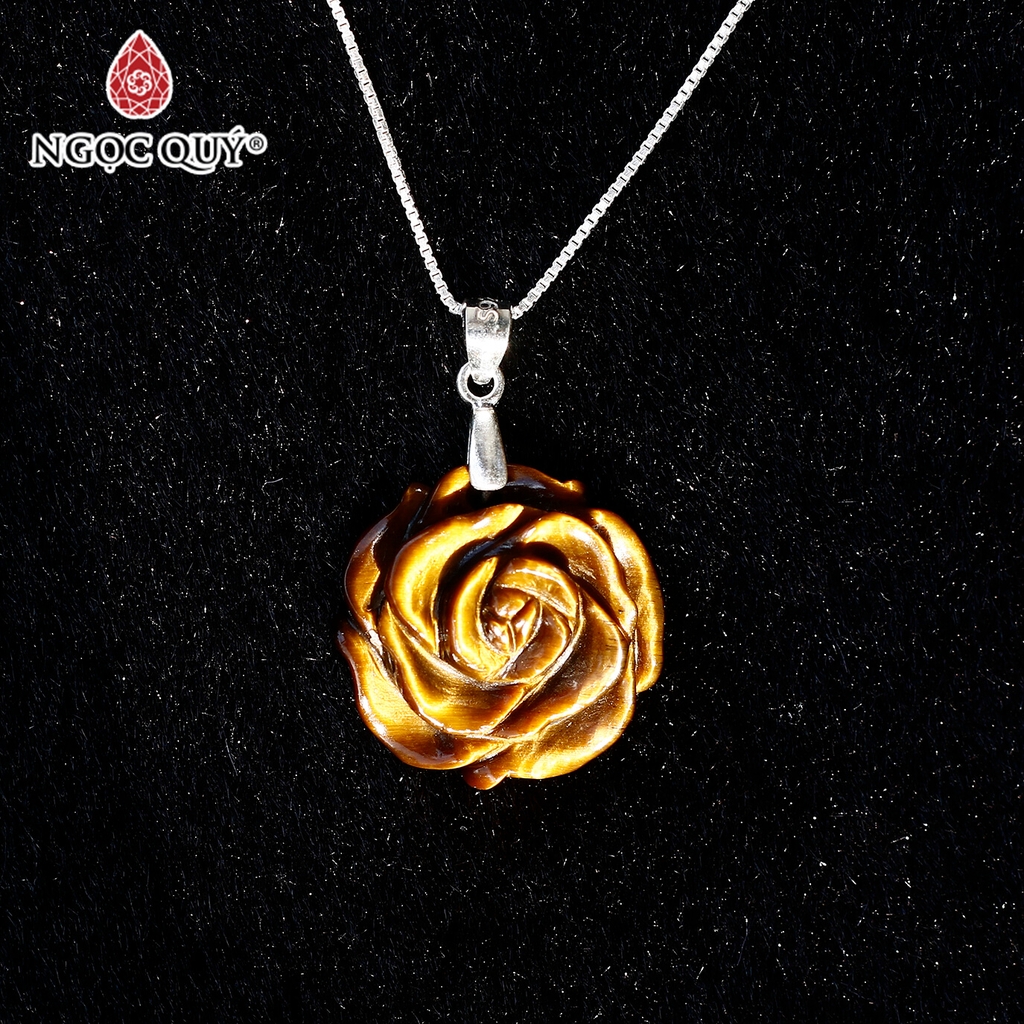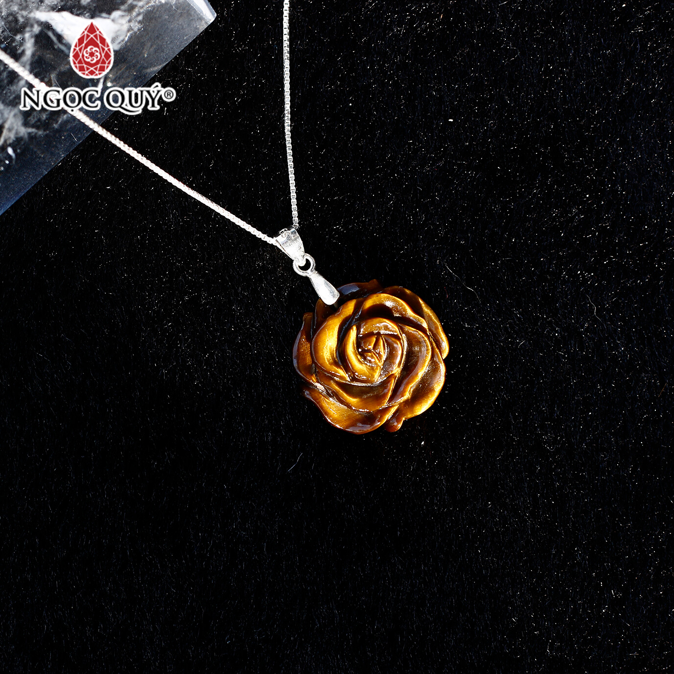Mặt dây chuyền hoa mẫu đơn đá thạch anh mắt hổ vàng nâu tặng dây bạc