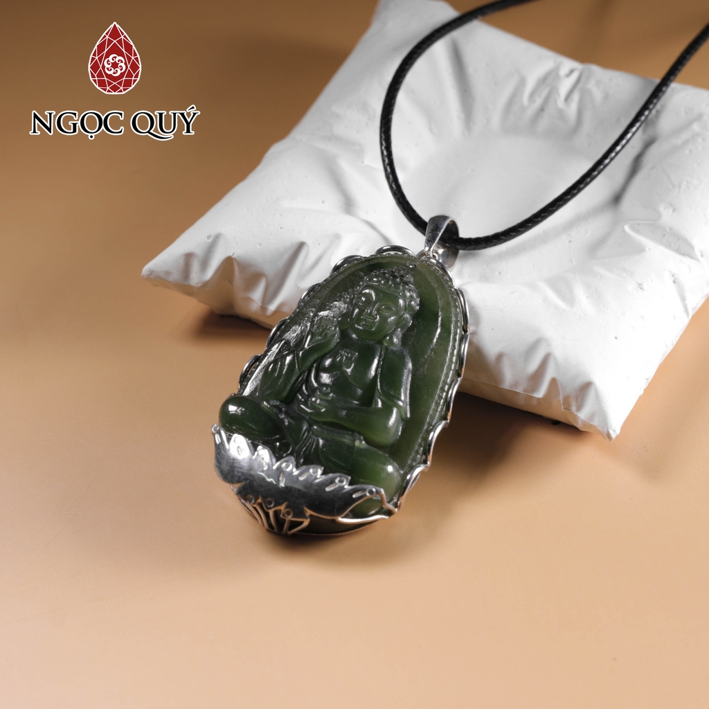Mặt dây chuyền Phật Adi ngọc bích nephrite bọc bạc size lớn