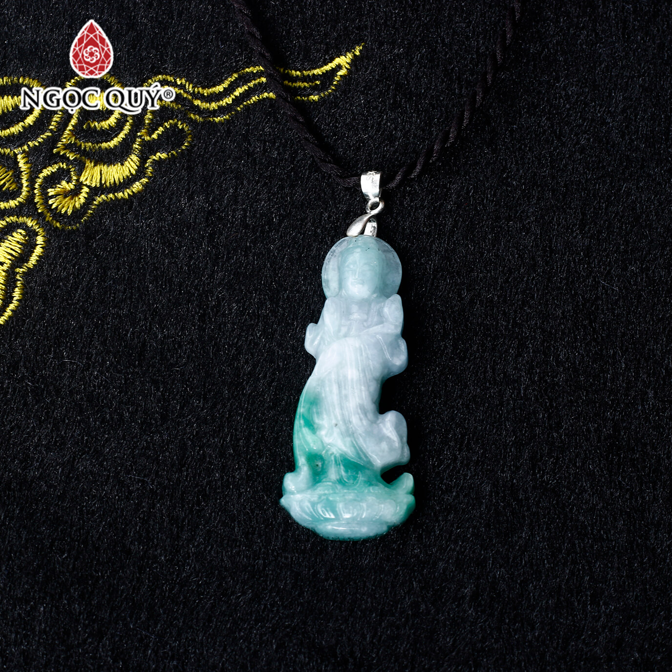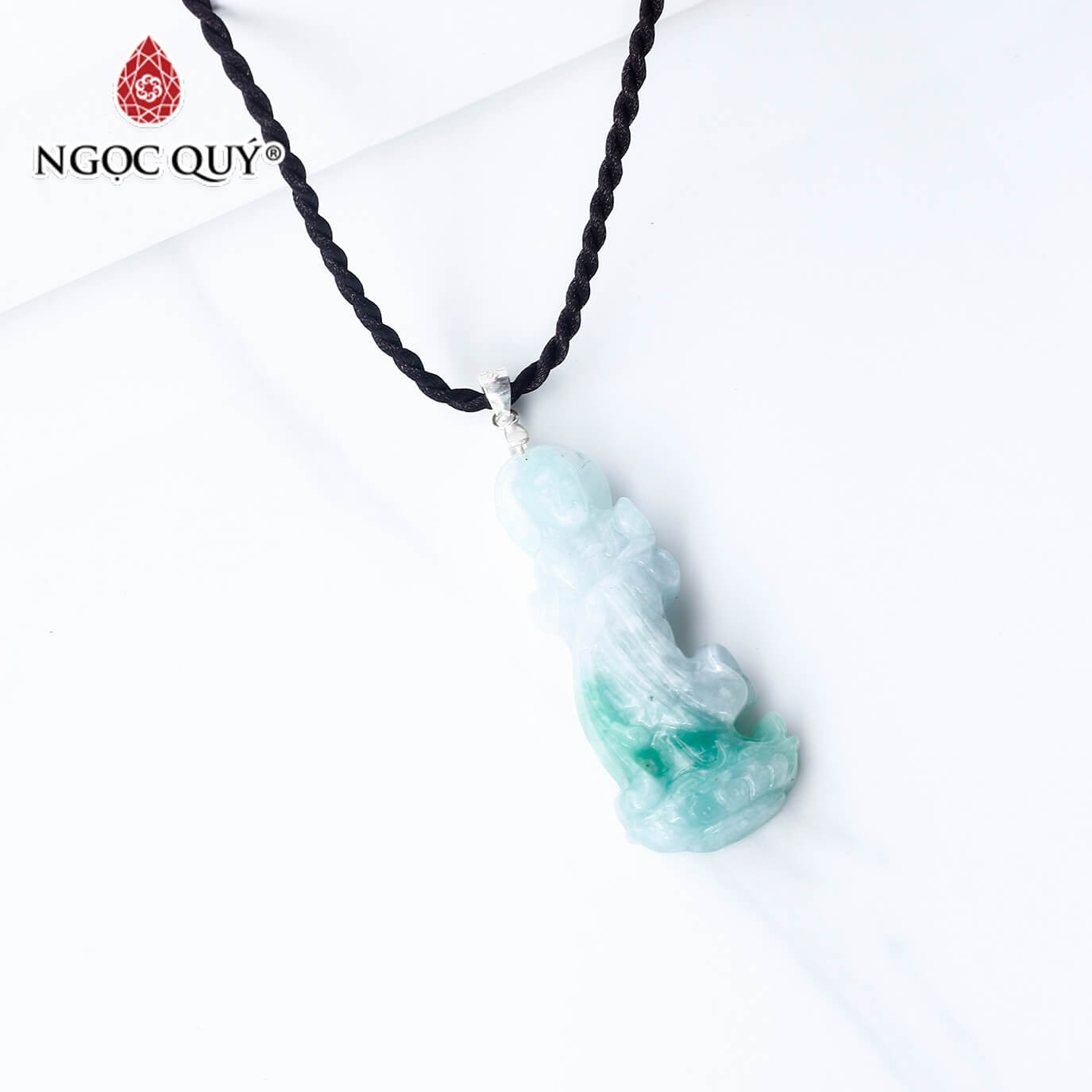 Mặt dây chuyền phát đá quan âm cẩm thạch phỉ thúy