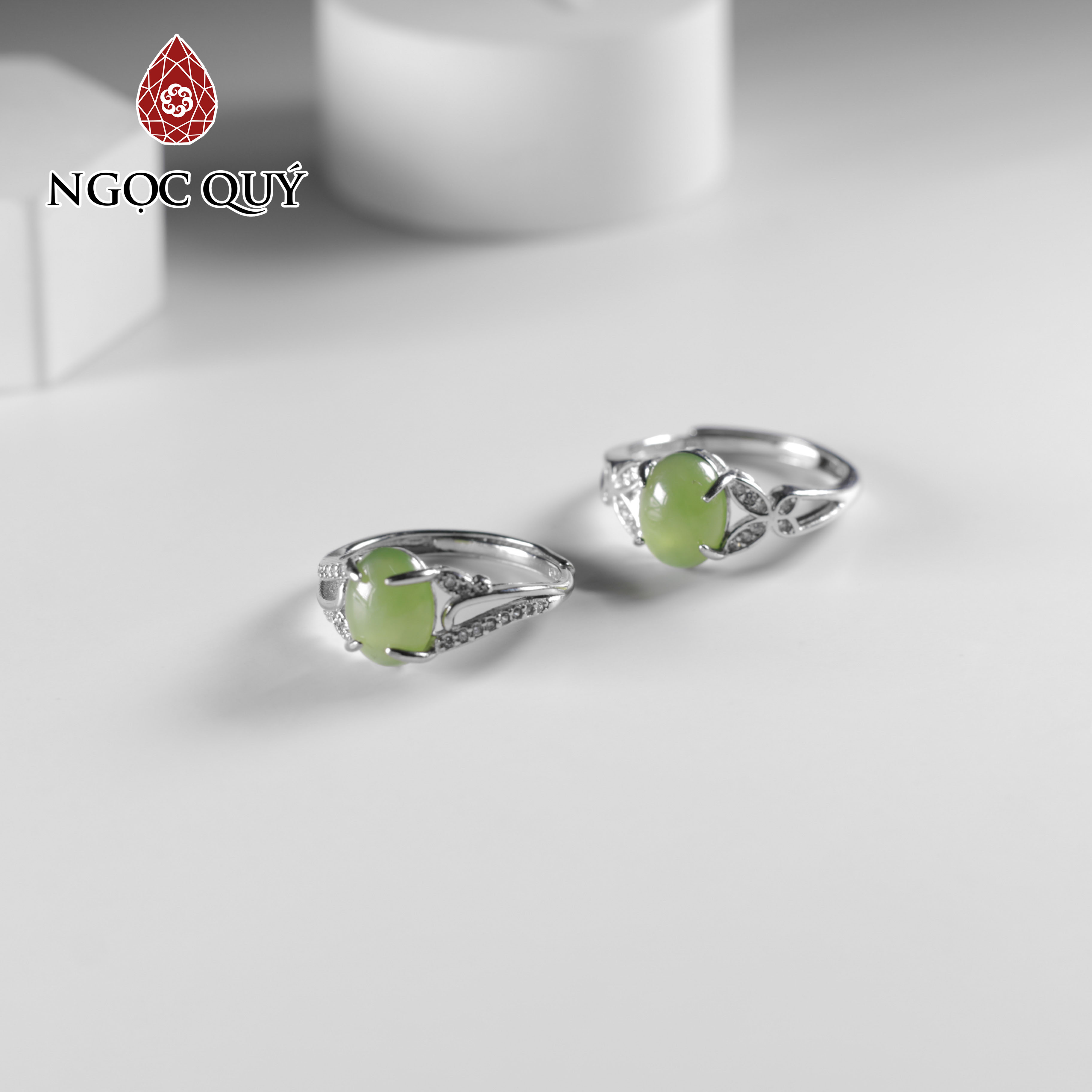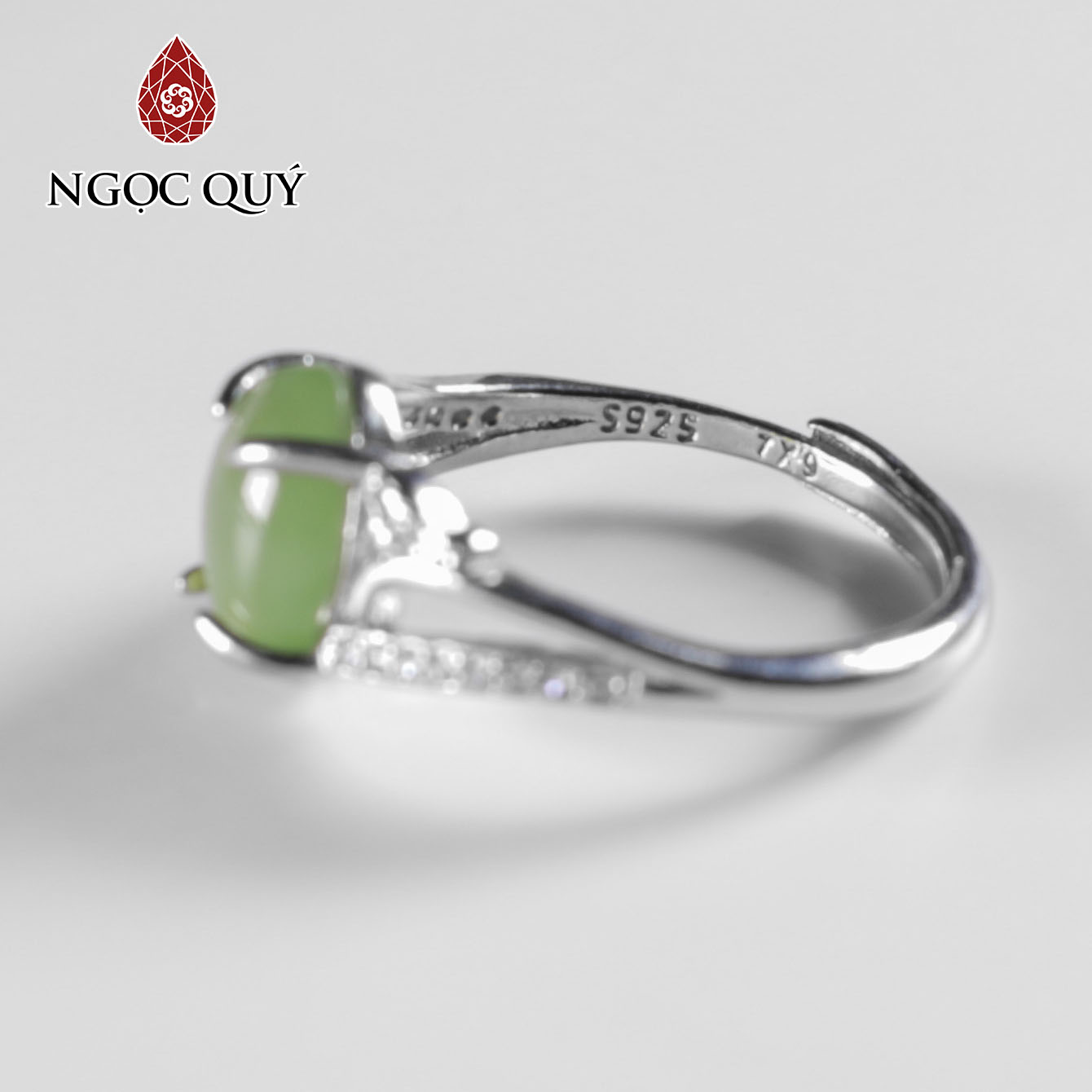 Nhẫn bạc đính đá ngọc bích nephrite freesize hạt