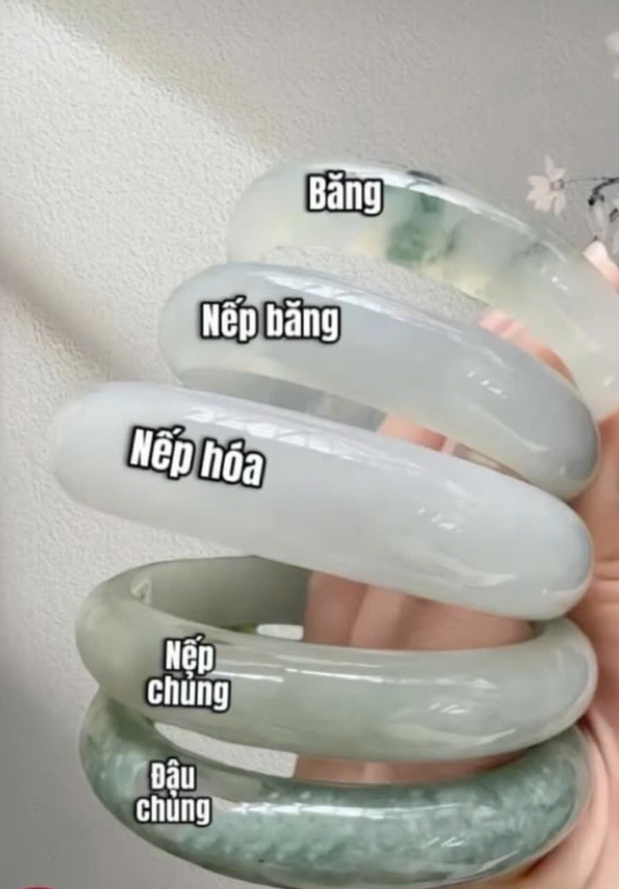 -Chất băng (băng chủng): Là bề mặt đá có độ bóng của thủy tinh, trong mờ đến trong suốt, trạng thái bên trong giống nước đóng băng vì độ trong tốt nền từ chủng băng trở lên dễ dàng nhìn thấy bông hoặc tạp chất bên trong đá.
