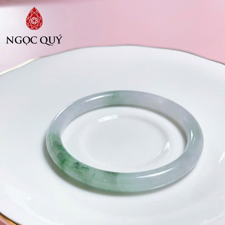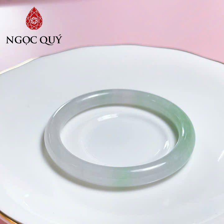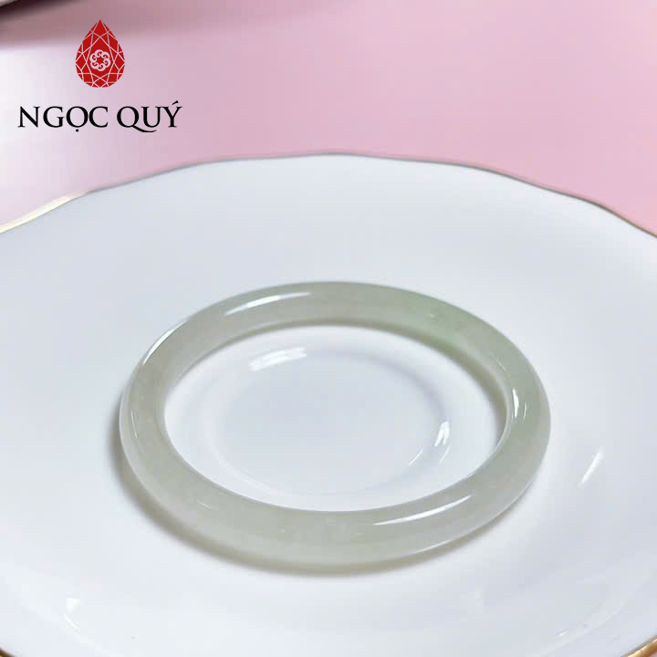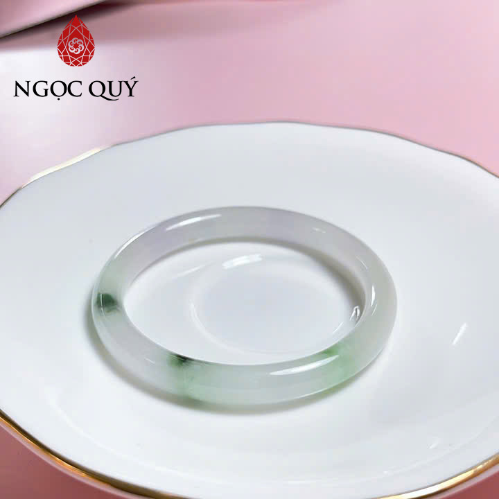 Vòng cẩm thạch A - Ngọc phỉ thúy type A bản hẹ bạch ngọc phớt xanh nhẹ điểm dầu chất nếp mịn ni 52 - 56 mm - Ngoc Quý