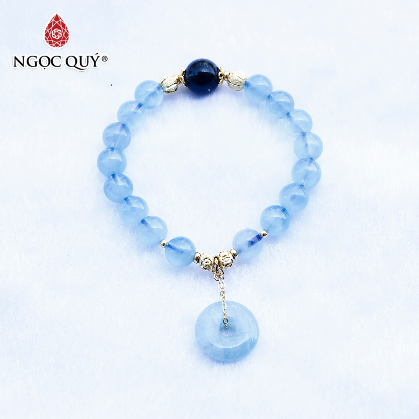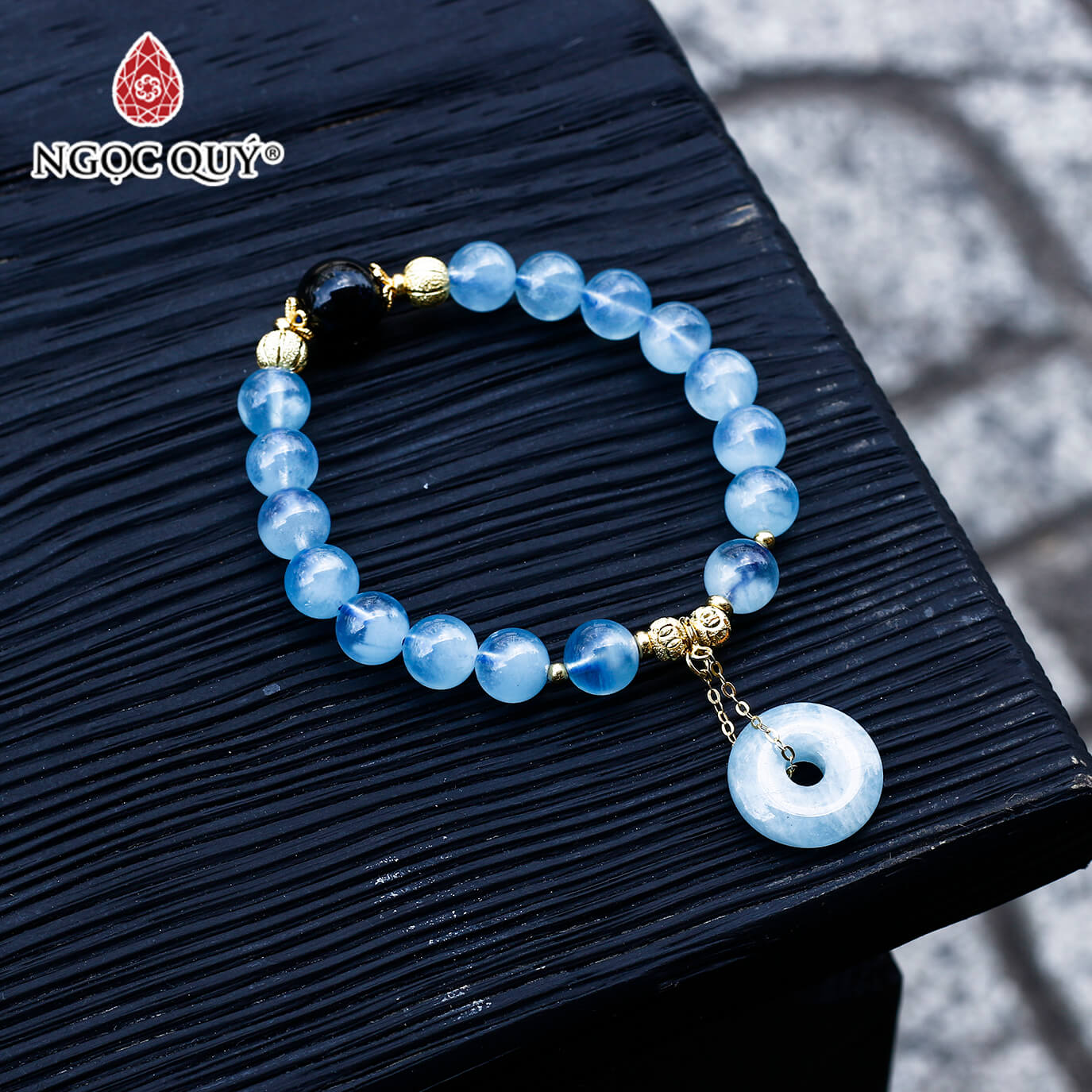 Vòng hải lam ngọc aquamarine phối đồng điếu charm bạc mạ vàng
