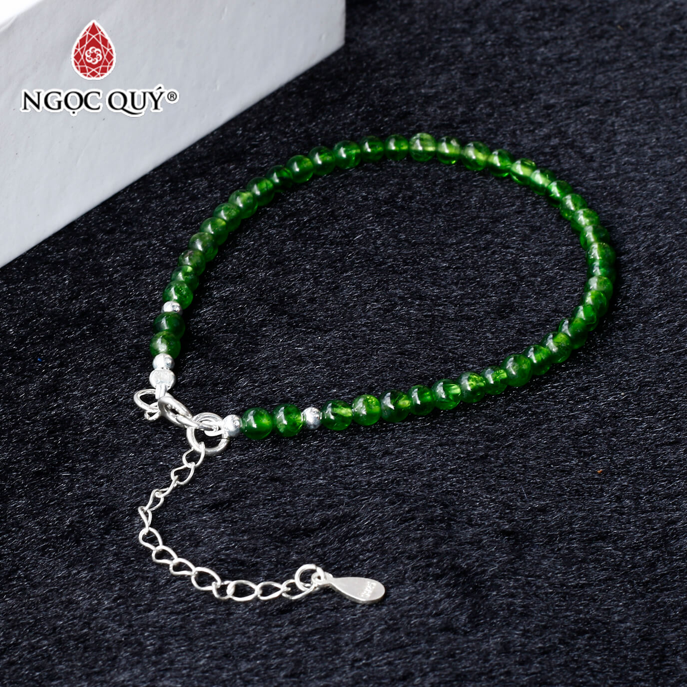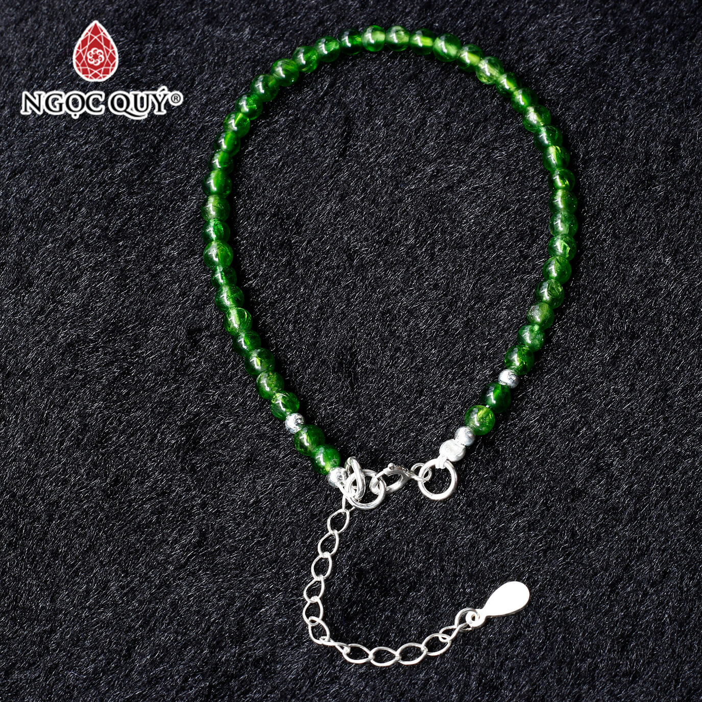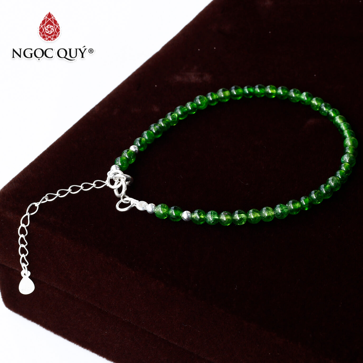 Màu xanh đặc biệt và sang trọng của Diopside khi chế tác thành vòng tay kết hợp cùng sẽ tạo nên một tác phẩm nghệ thuật tuyệt vời, vừa thanh lịch, vừa không kém phần hiện đại, góp phần tôn thêm vẻ đẹp đôi bàn tay và mang lại nhiều may mắn cho bạn.