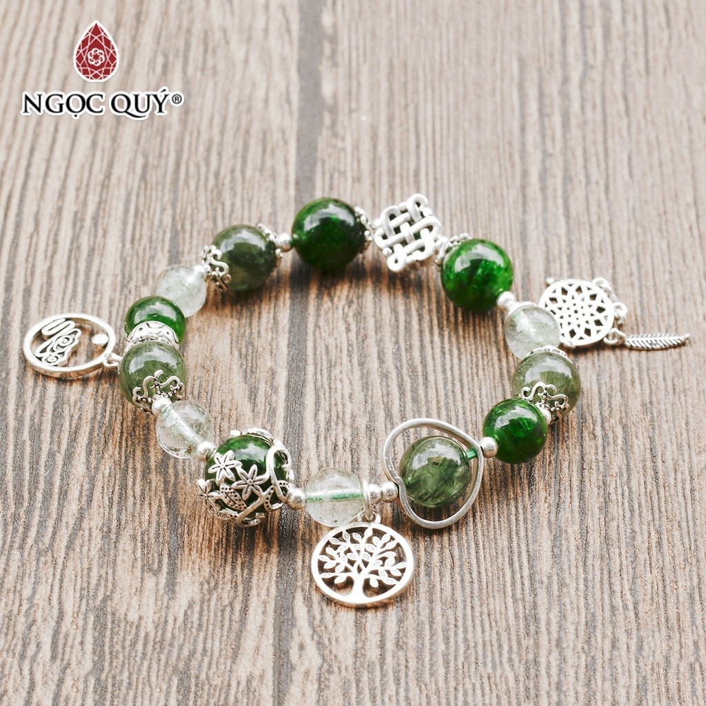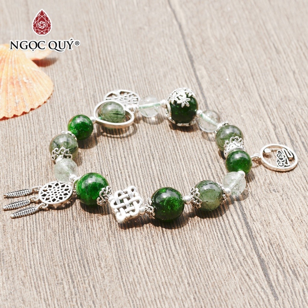 Màu xanh đặc biệt và sang trọng của Diopside khi chế tác thành vòng tay kết hợp cùng sẽ tạo nên một tác phẩm nghệ thuật tuyệt vời, vừa thanh lịch, vừa không kém phần hiện đại, góp phần tôn thêm vẻ đẹp đôi bàn tay và mang lại nhiều may mắn cho bạn.