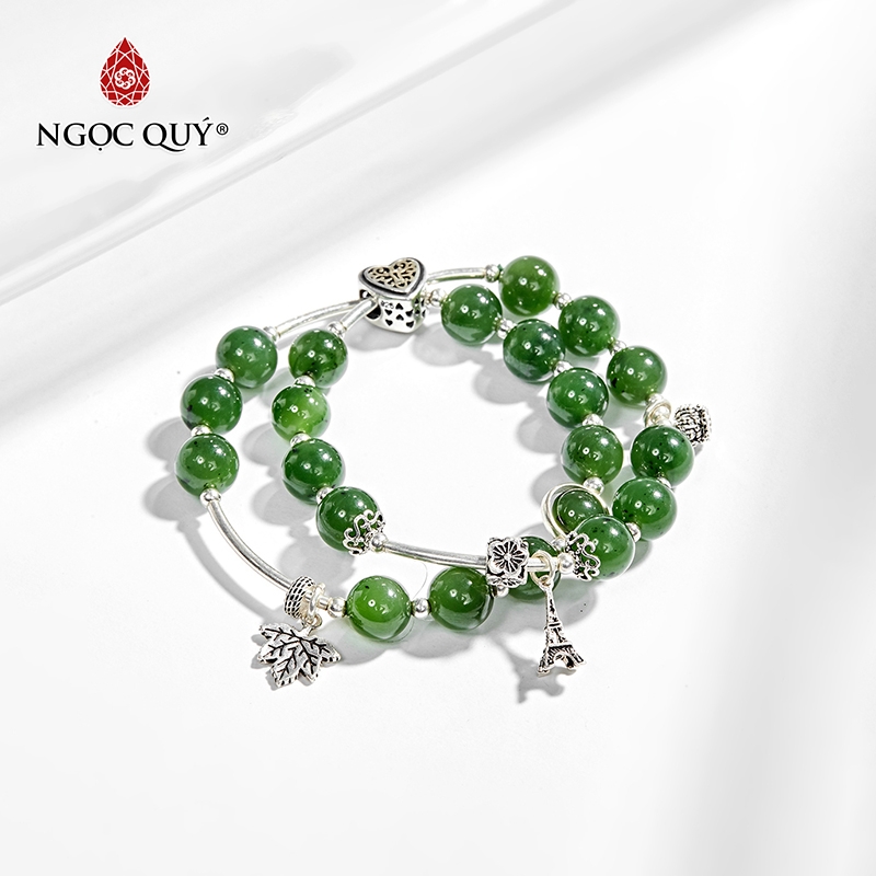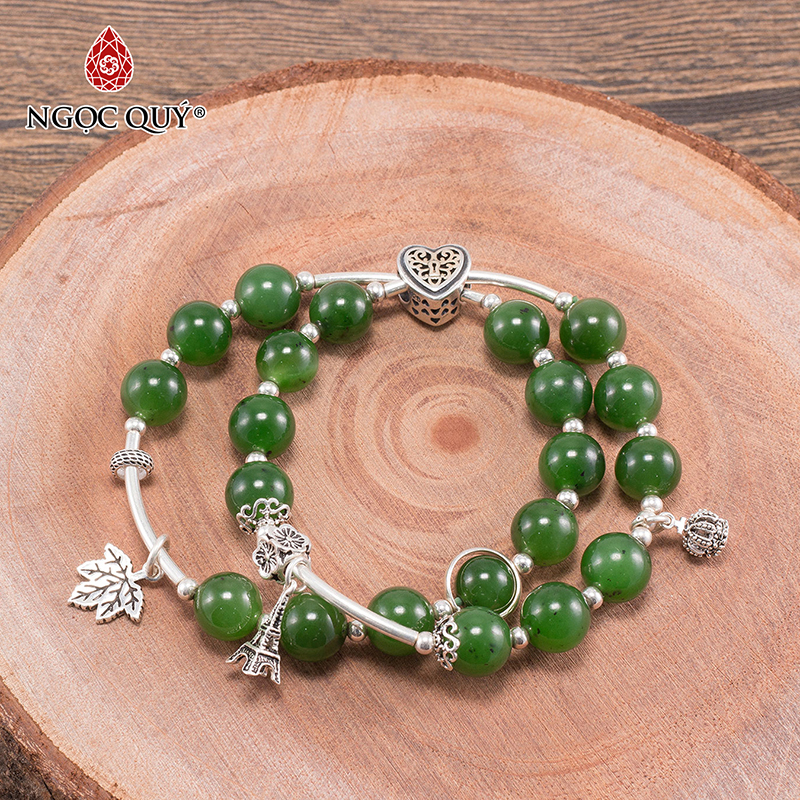 VÒNG TAY PHONG THỦY ĐÁ NGỌC BÍCH PHỐI CHARM KHÓA TRÁI TIM