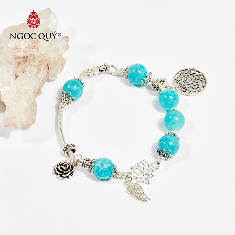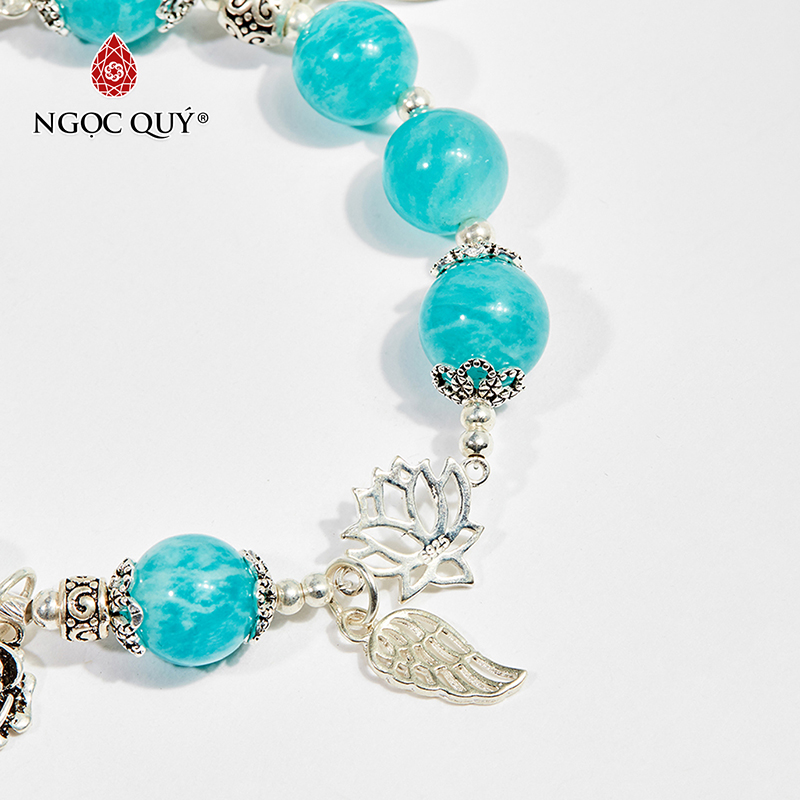 - Amazonite là vật hộ mệnh bảo vệ con người trước những cơn sóng dữ, là vị chiến thần không bao giờ sợ sệt trước bóng tối và ác quỷ. Vì thế, nếu đeo đá lúc ngủ sẽ có cảm thấy an toàn và thoải mái hơn, xua đuổi ác mộng quấy nhiễu.