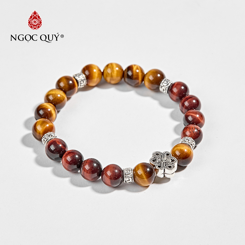 Vòng tay phong thủy đá mắt hổ vàng nâu phối charm bạc hạt 8mm