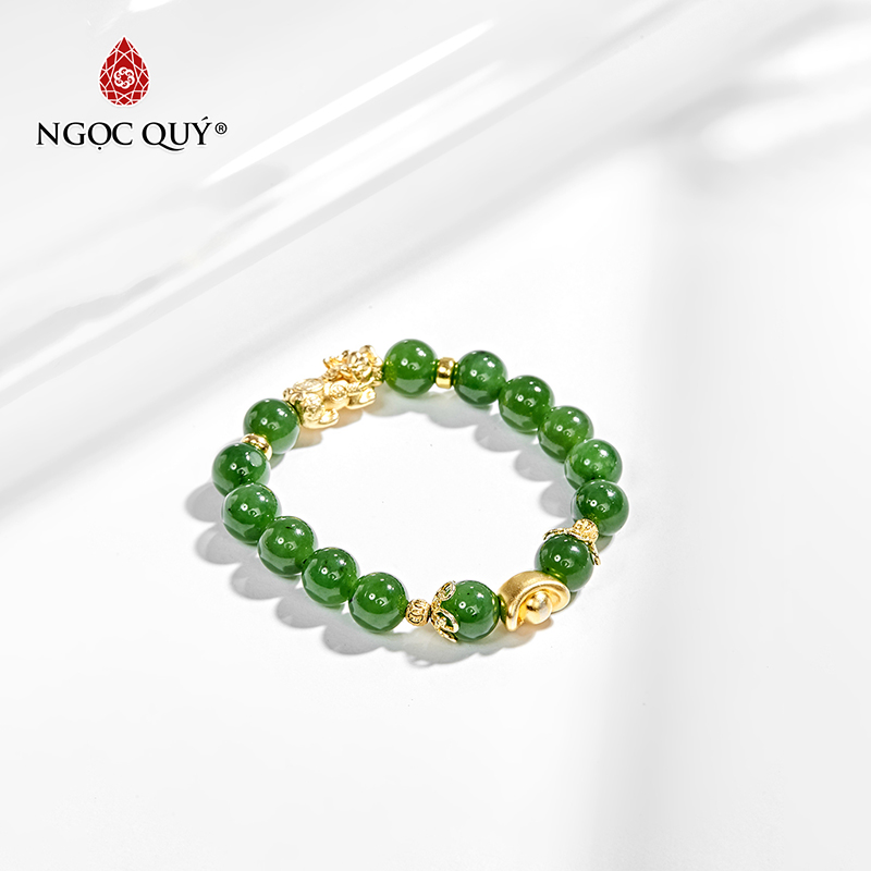 VÒNG TAY PHONG THỦY ĐÁ NGỌC BÍCH PHỐI CHARM TỲ HƯU BẠC MẠ VÀNG