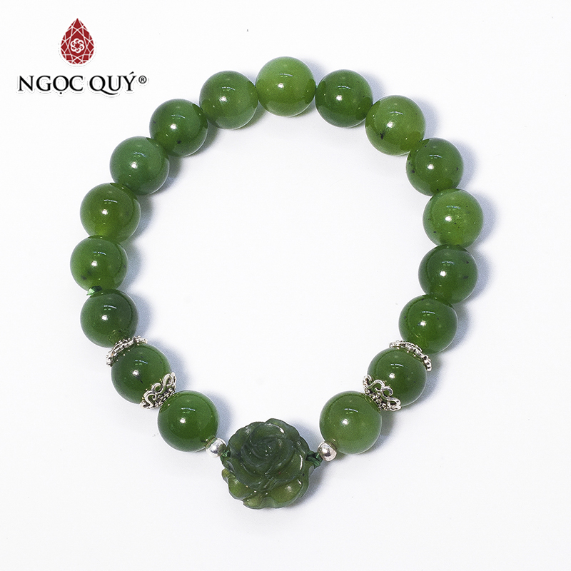 VÒNG TAY PHONG THỦY ĐÁ NGỌC BÍCH PHỐI HOA MẪU ĐƠN: