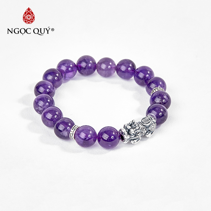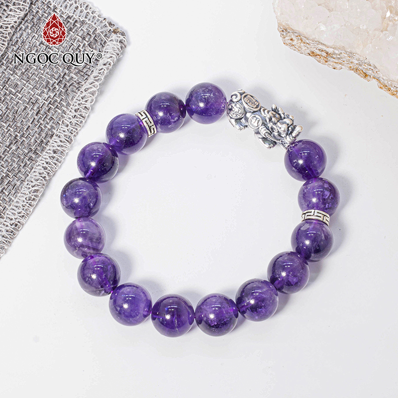 VÒNG TAY PHONG THỦY ĐÁ THẠCH ANH TÍM PHỐI CHARM TỲ HƯU BẠC