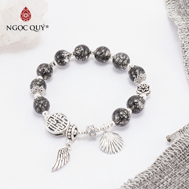 VÒNG THAY PHONG THỦY ĐÁ THẠCH ANH TÓC ĐEN CHARM BẠC