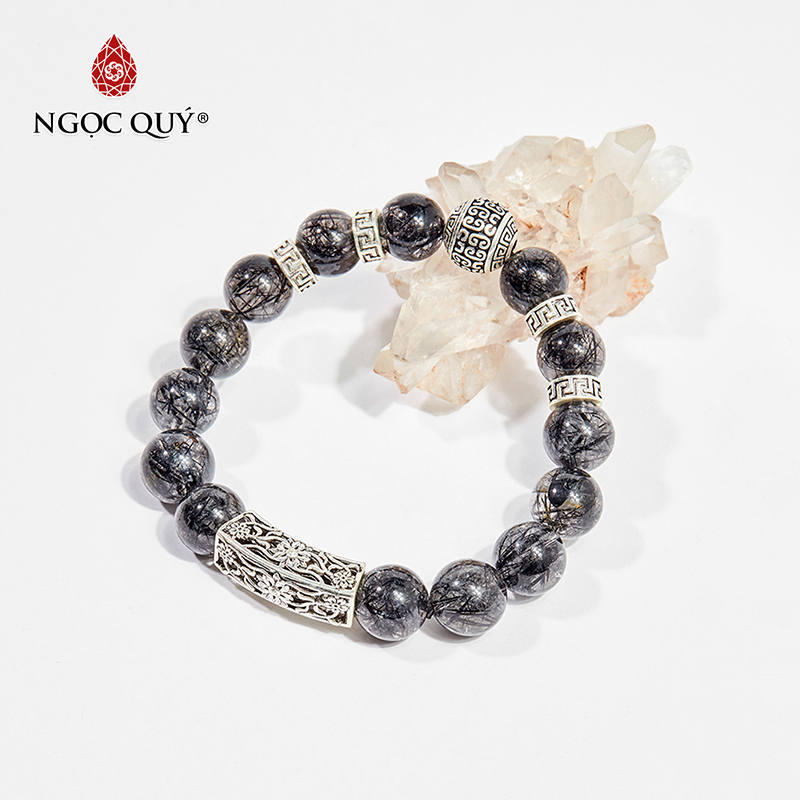 VÒNG THAY PHONG THỦY ĐÁ THẠCH ANH TÓC ĐEN CHARM BẠC