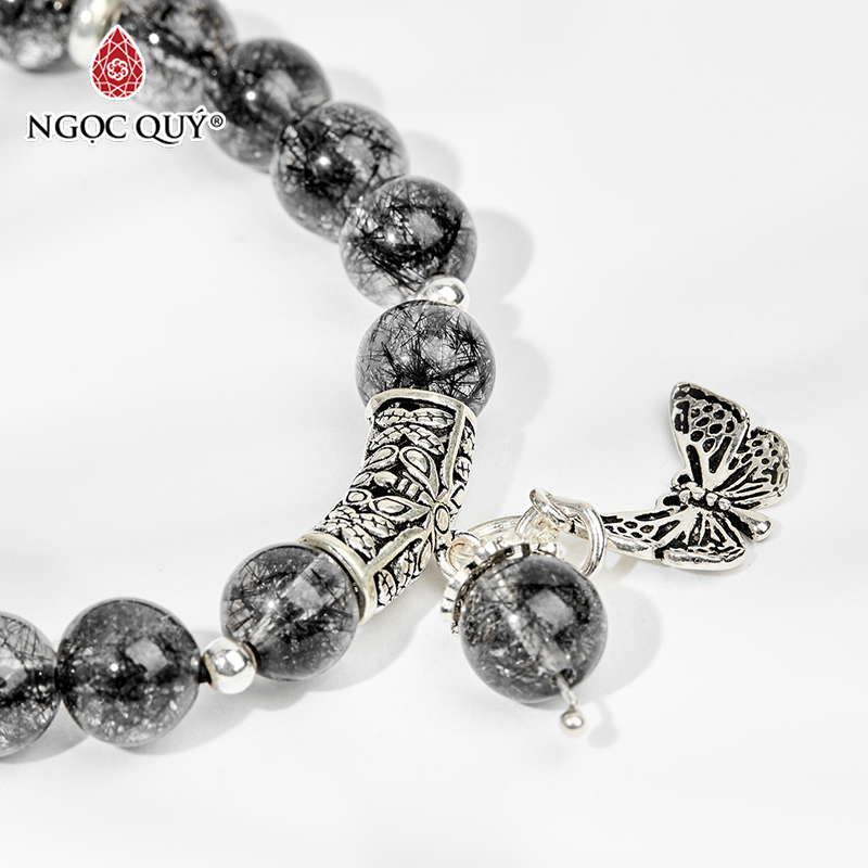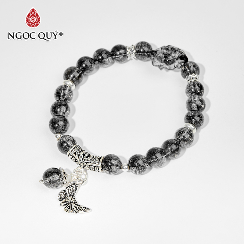 VÒNG THAY ĐÁ THẠCH ANH TÓC ĐEN PHỐI CHARM HOA MẪU ĐƠN VÀ BƯỚM