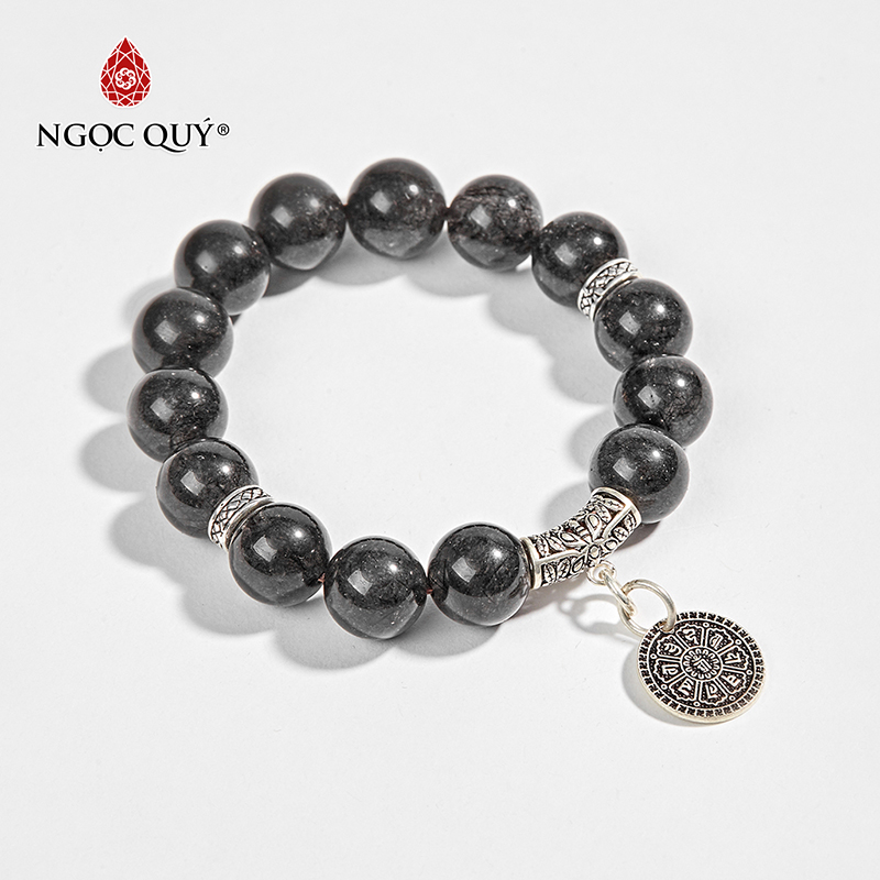 VÒNG THAY ĐÁ THẠCH ANH TÓC ĐEN PHỐI CHARM LỤC TỰ