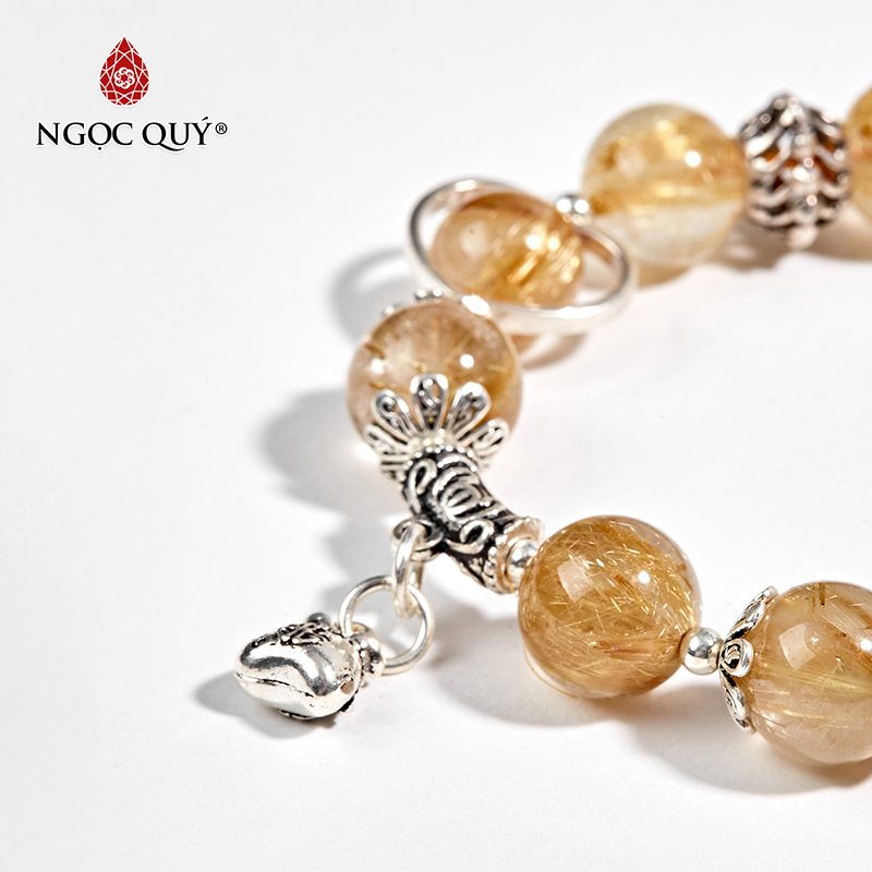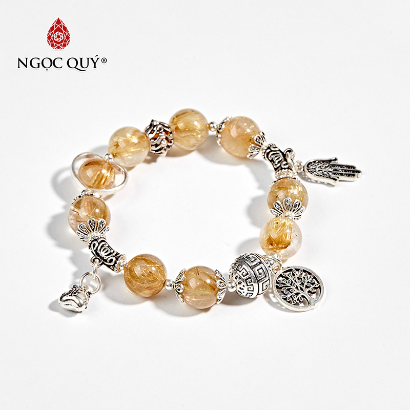 VÒNG TAY PHONG THỦY ĐÁ THẠCH ANH TÓC VÀNG PHỐI CHARM TÚI TIỀN BẠC