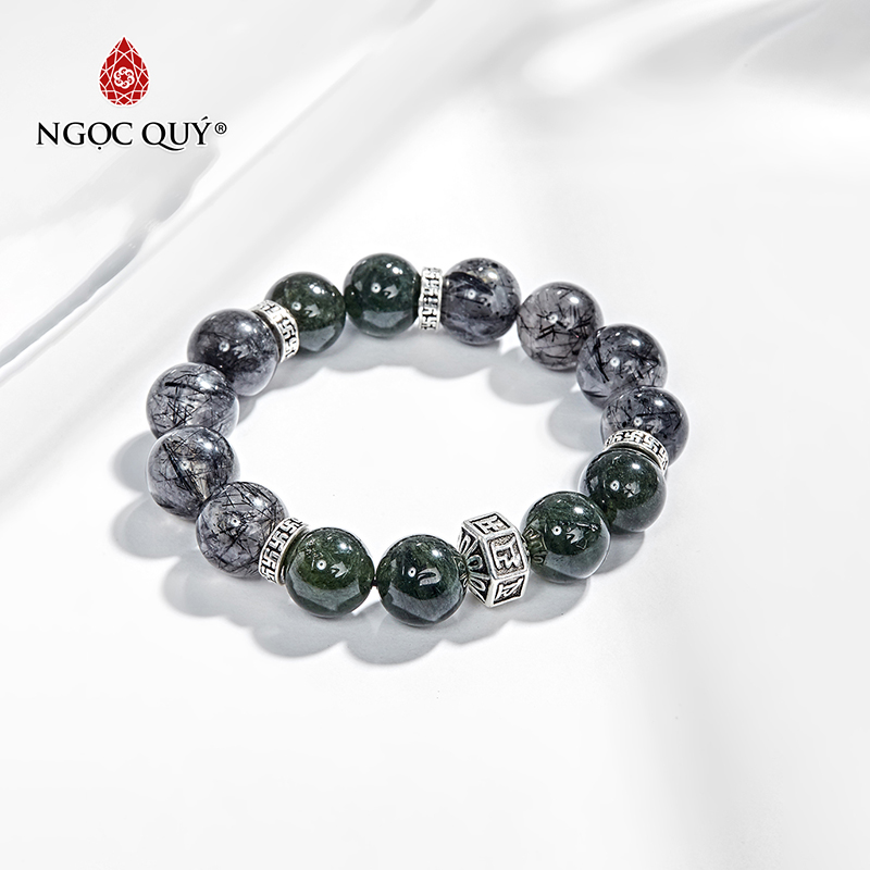 VÒNG TAY ĐÁ THẠCH ANH TÓC XANH PHỐI CHARM LỤC TỰ