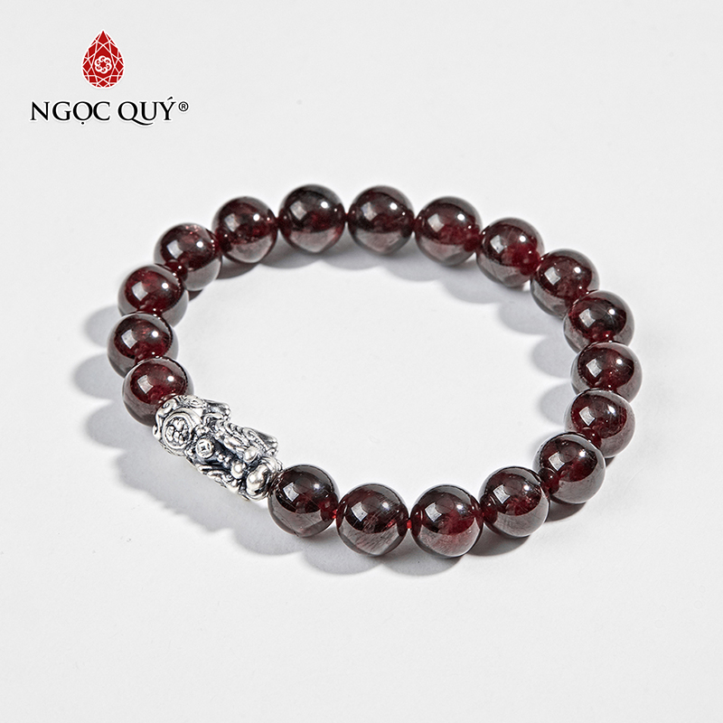 VÒNG TAY PHONG THỦY ĐÁ GARNET PHỐI CHARM BẠC
